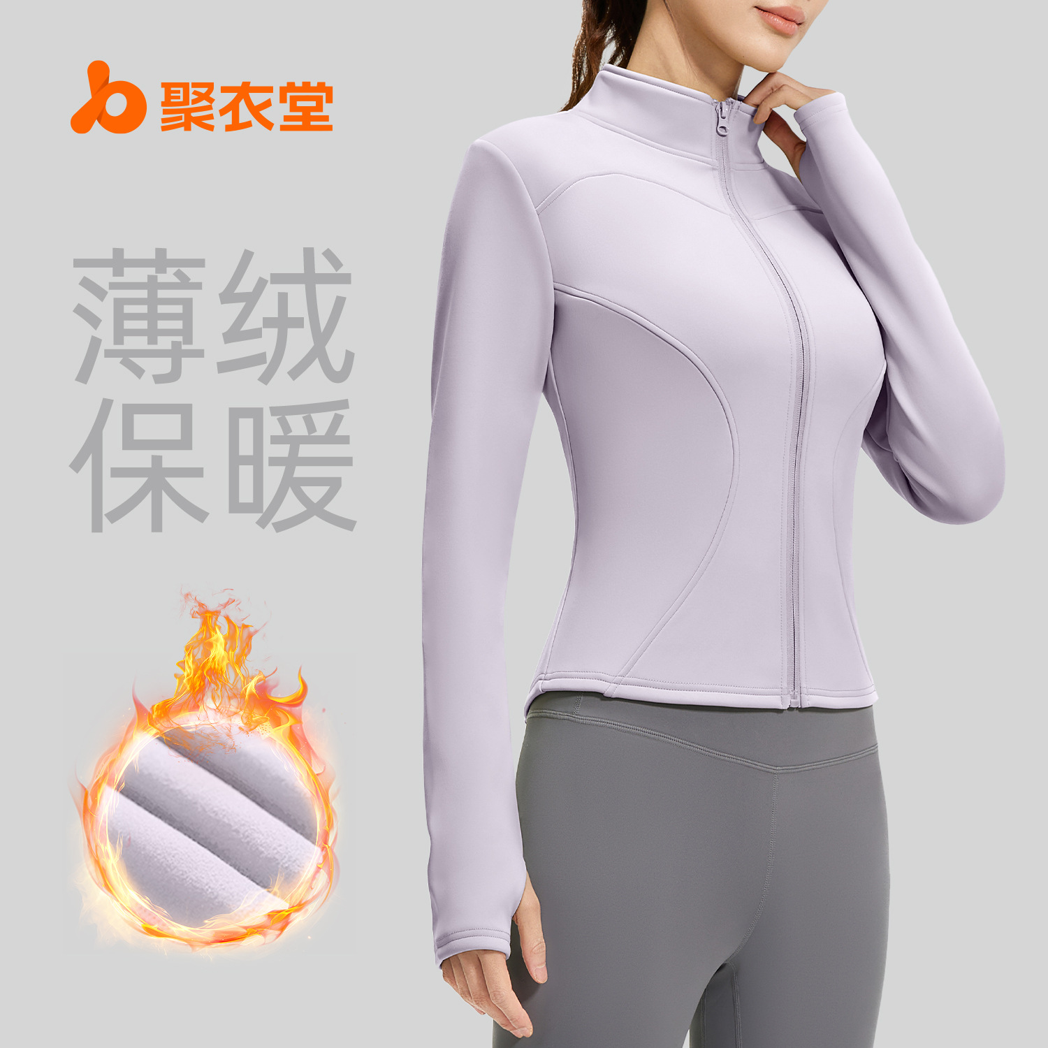 聚衣堂拉链修身保暖长袖上衣女立领运动紧身瑜伽服外套