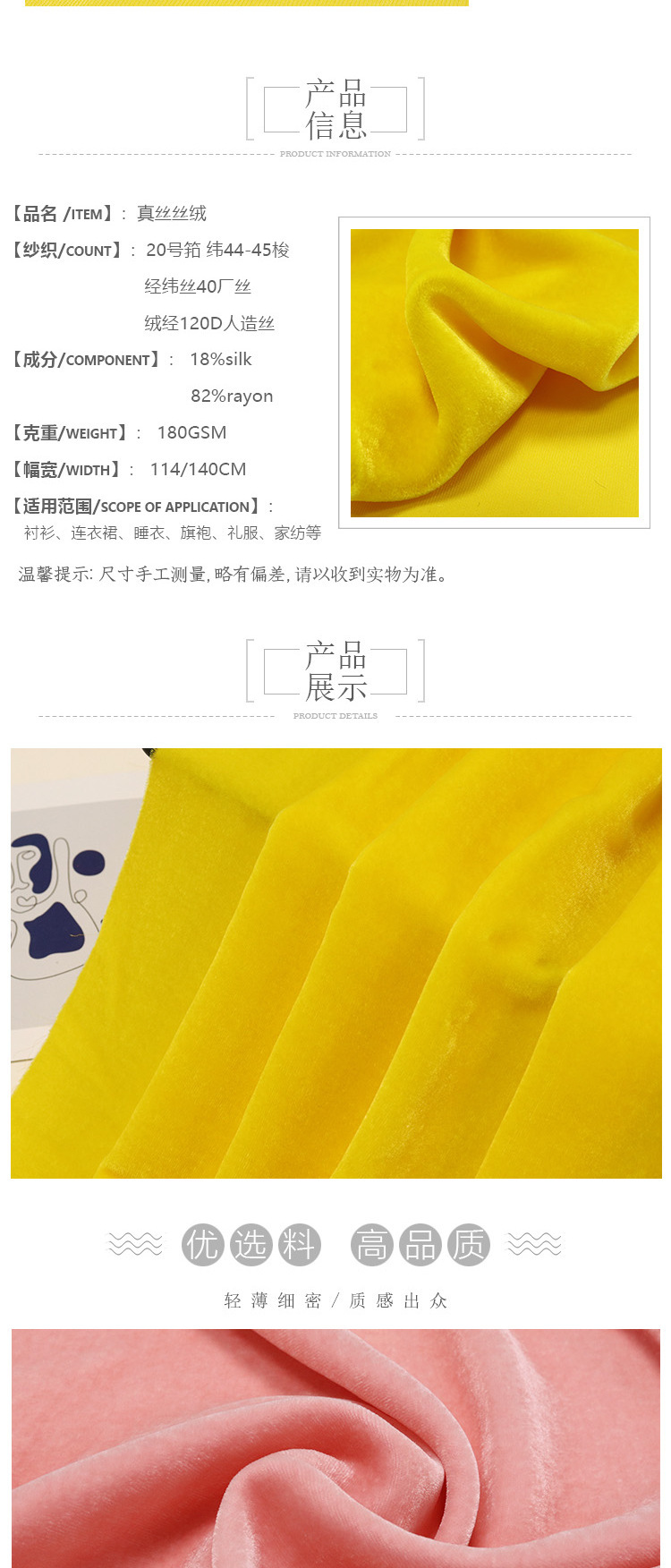 成分及含量 底布100%silk 面布100%rayon