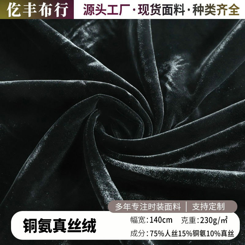 230克高密铜氨真丝丝绒混纺服装面料高奢旗袍连衣裙布料服装面料