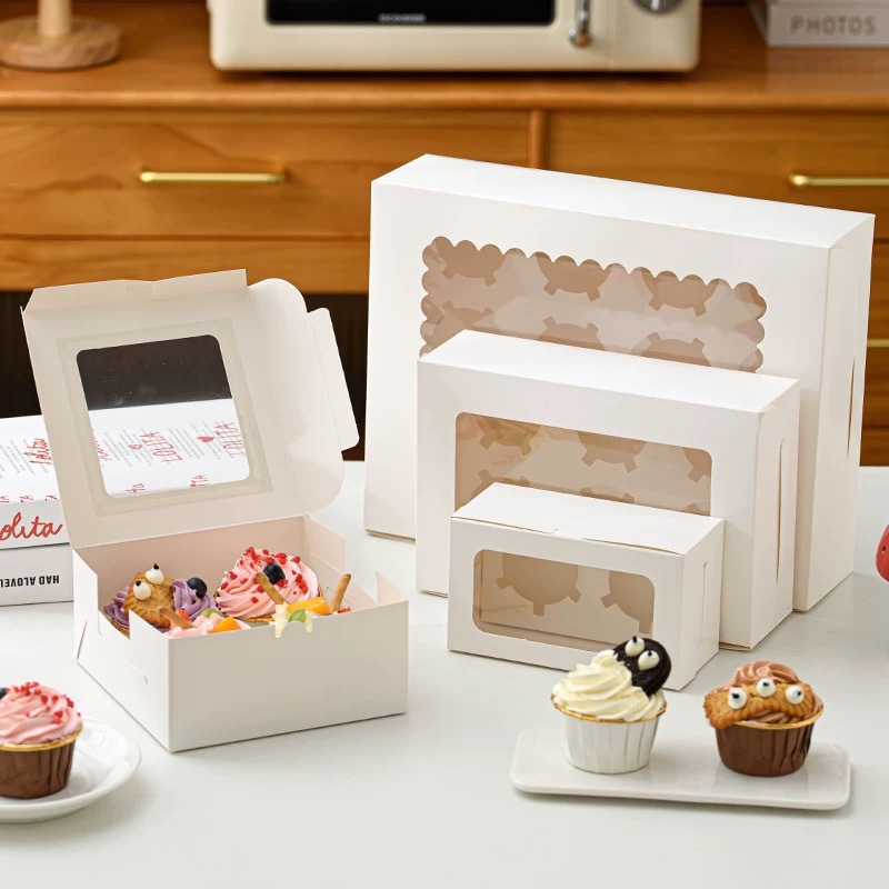 现货开窗纸杯蛋糕包装盒2/4/6/9/12粒马芬盒蛋挞打包可颂马卡龙盒