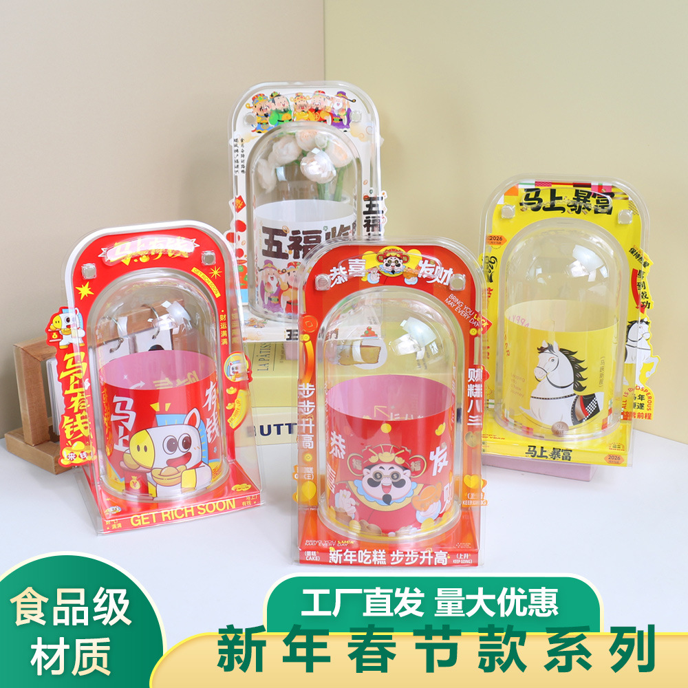 新しい丸型 4inch 3inch ケーキボックス ハンドヘルドペストリー包装箱 ティラミスケーキベーキングブリスター包装