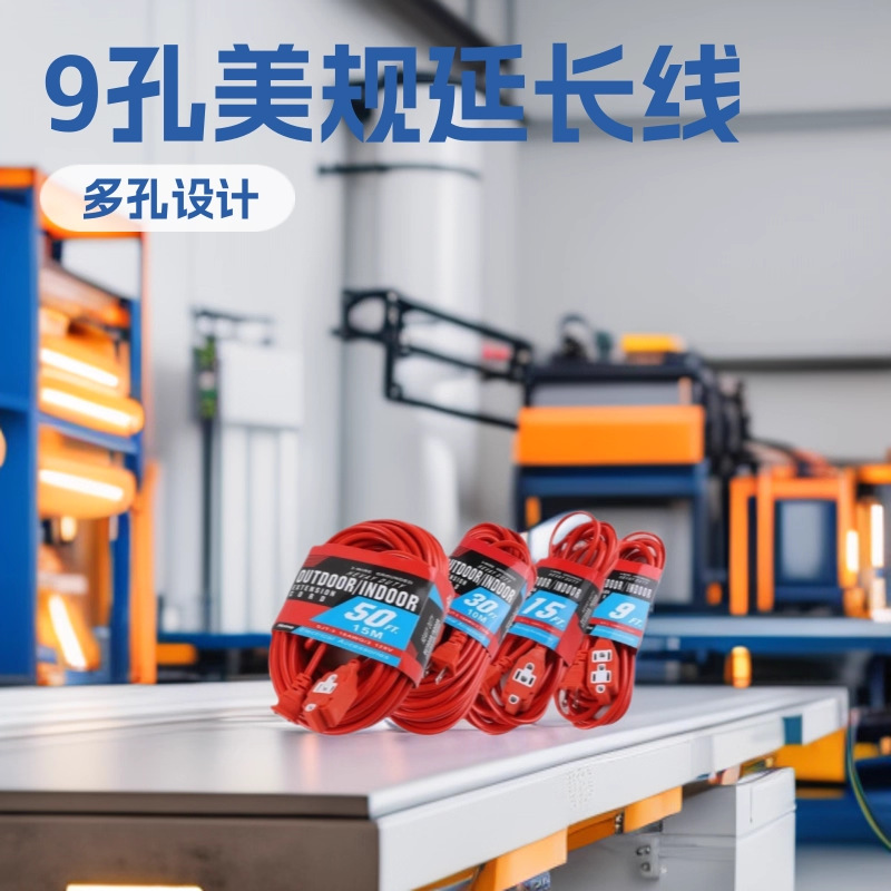 美规延长线9孔小排插亚马逊外贸两芯极性美式插座工厂工业电线