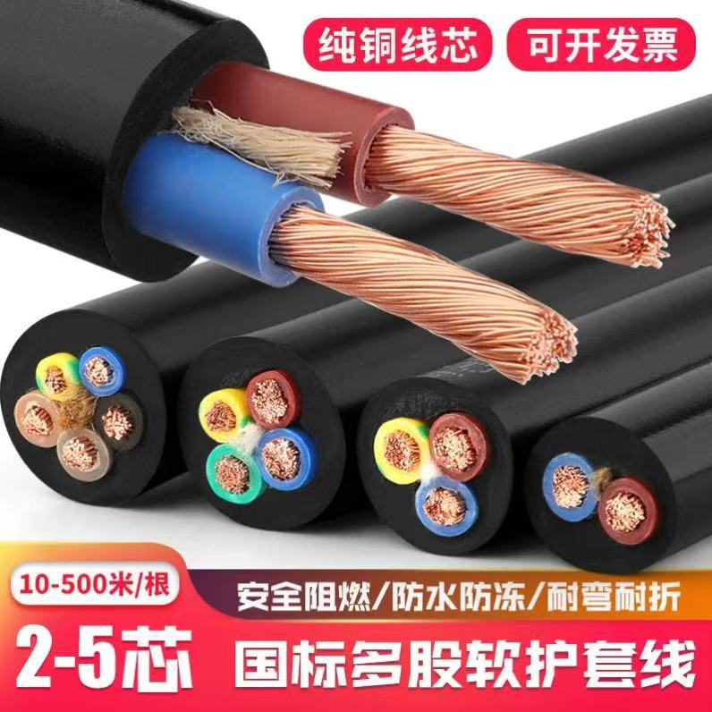 珠江電線ケーブル国標RVV純銅2 3 4 5芯0.75 1.52.5 6平方シース電源コード