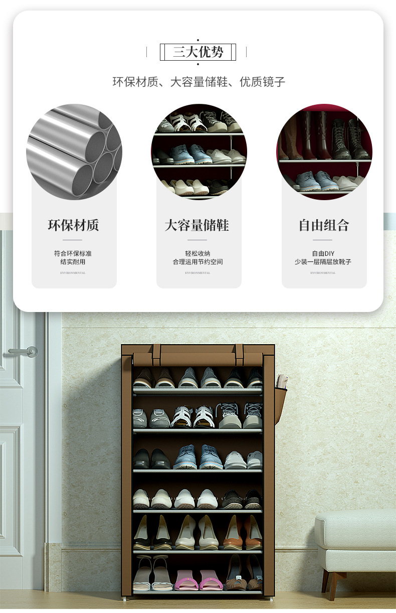 簡易靴棚多層鋼管自由組立防塵家庭用省スペース学生寮収納経済型下駄箱