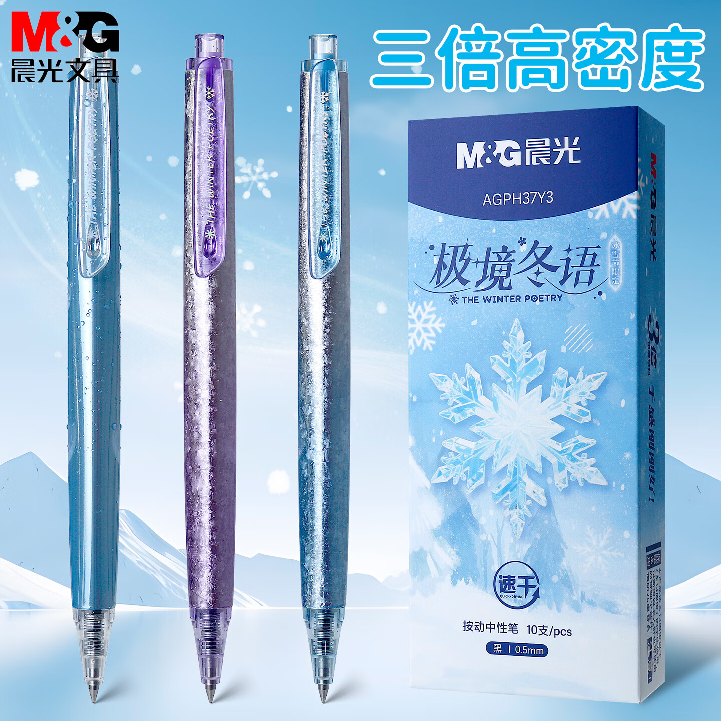 晨光极境冬语按动中性笔三倍高密度学生子弹头速干刷题水笔H37Y3