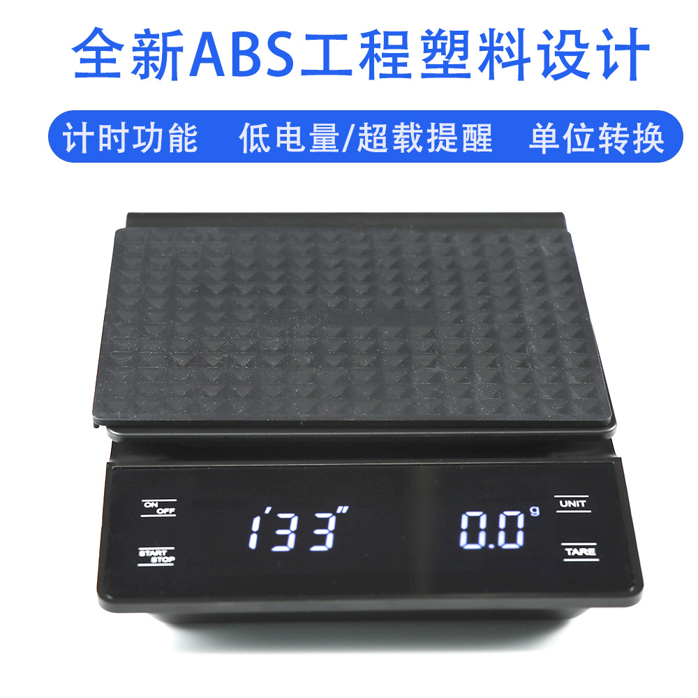 咖啡称手冲多功能吧台电子称克秤USB充电带计时器3KG厨房秤