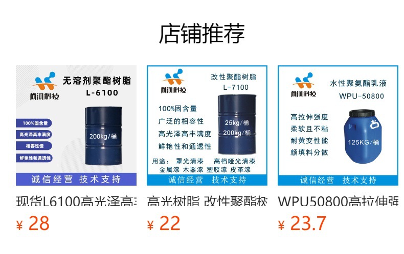 3、本品多与其他树脂复配使用,可以明显提高漆膜耐磨性、丰满度、硬度、耐溶剂性等;