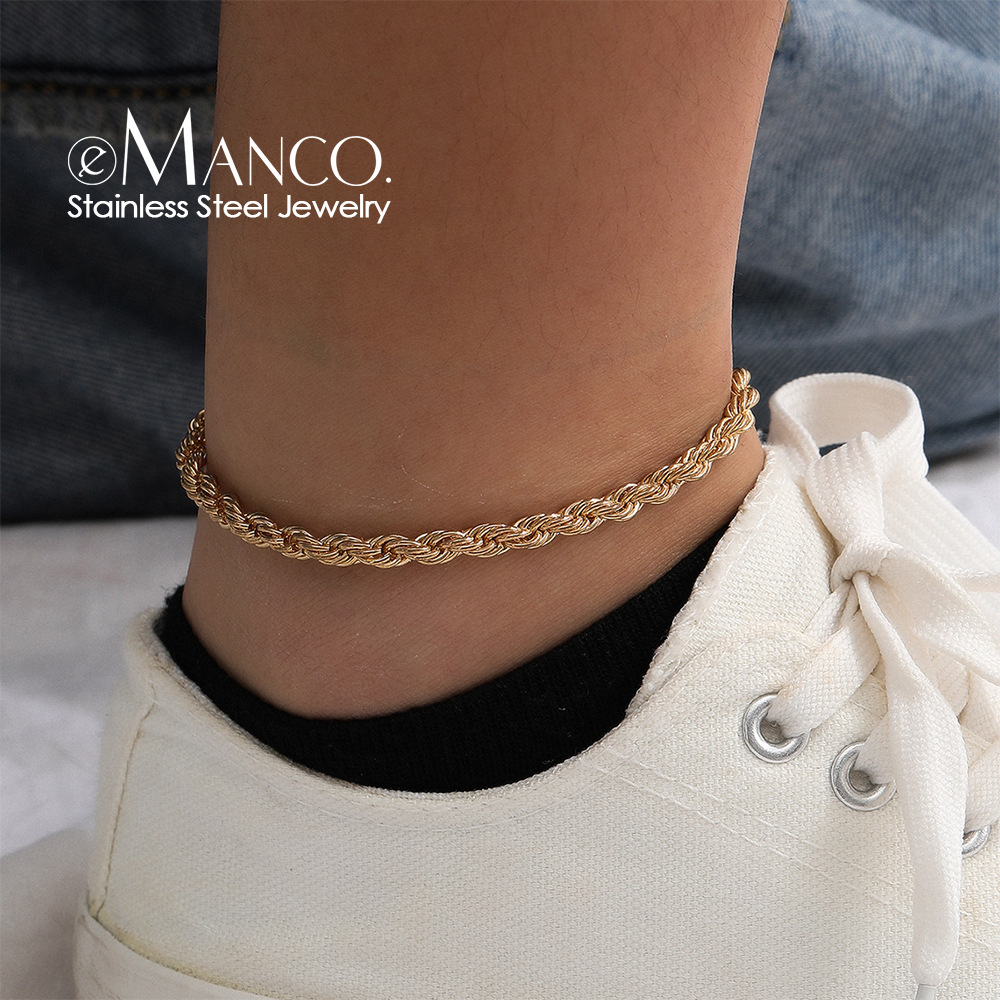 eManco ツイストチェーンアンクレット 14K金メッキステンレスレッグチェーン レディース金メッキレッグリング 色褪せないアンクレット 卸売