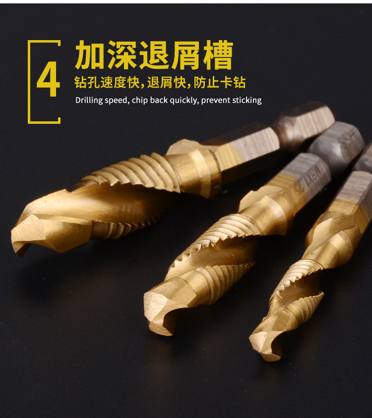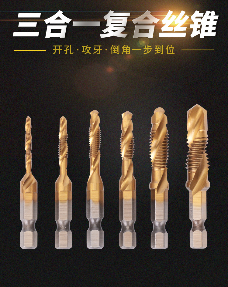 スリーインワン機用タップタップドリル六角柄タッピング複合ドリル面取り一体螺旋タップセット