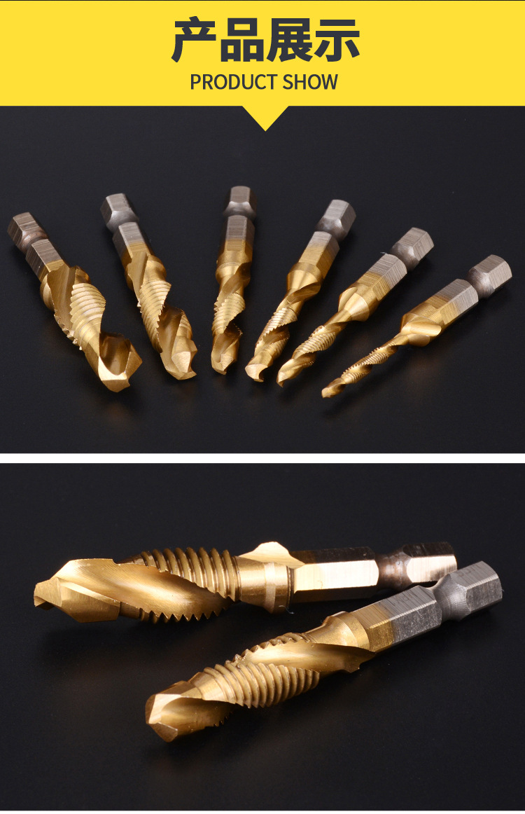 多機能複合タップ電動ドリル穴あけねじ切り工具六角軸ドリルビットセット機械用スパイラルタップ