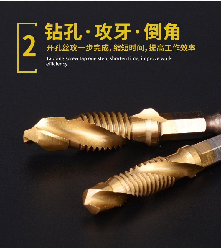 跨境多功能螺旋丝锥攻钻一体丝攻手电钻打孔工具套装机用复合丝锥