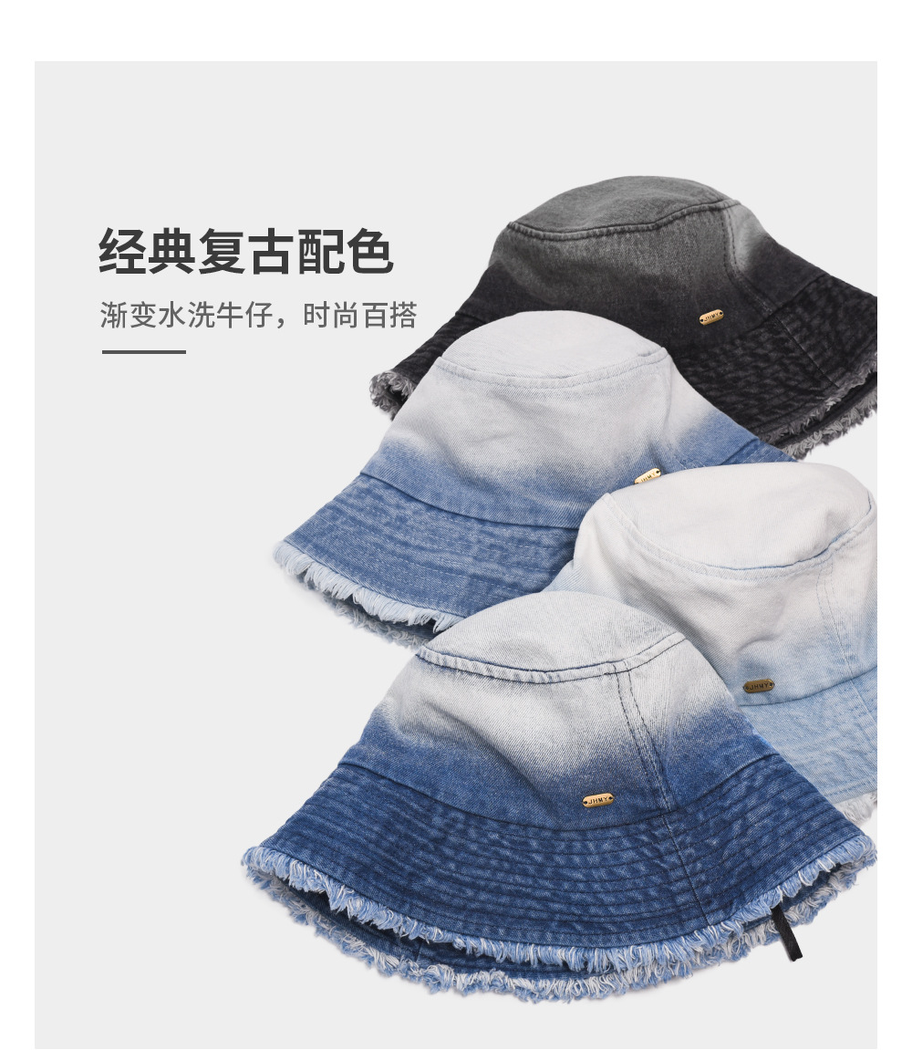 2023新型グラデーションバリ水洗いカウボーイ漁師帽男夏季節日よけ日焼け止め帽子女型バケツ帽