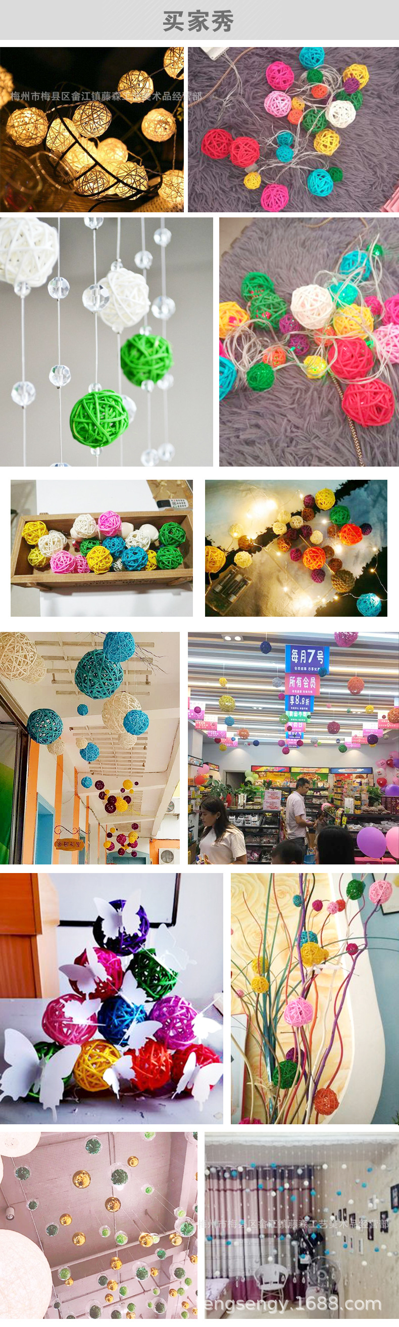 籐ボール卸売3-50cmカラーアロマ籐ボール幼稚園教室モールショーウインドー廊下飾りペンダントチャーム