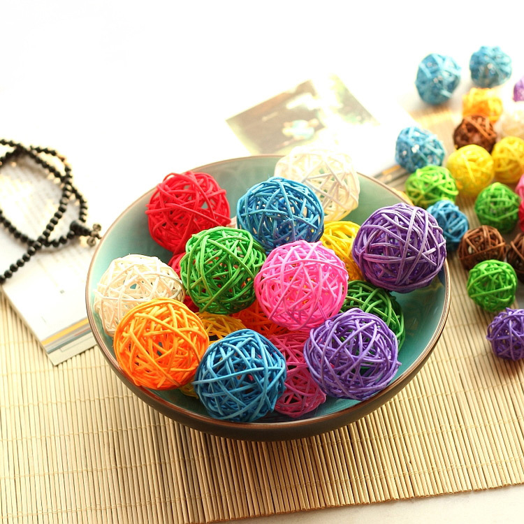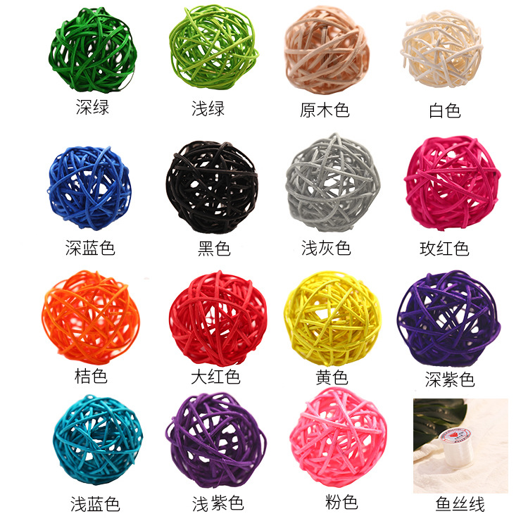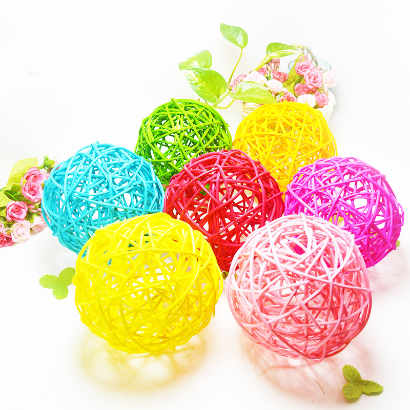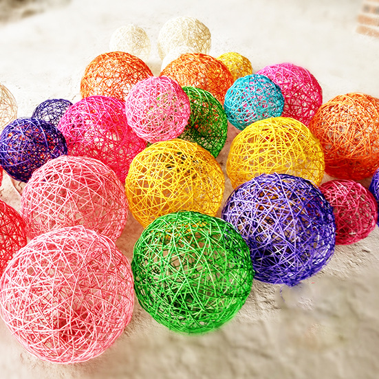 クロスボーダー在庫あり5CMカラフルな籐ボール、クリスマスデコレーションボール、幼稚園用ペンダントボール、ランプ、籐編みボール、卸売籐工芸品