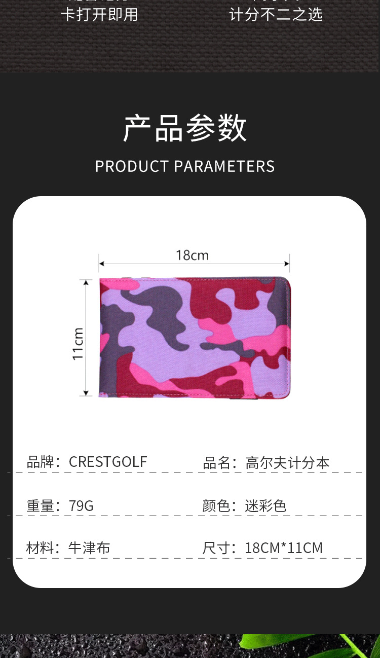 迷彩ゴルフスコアクリップオックスフォード布ゴルフスコア本鉛筆スコアカード球場試合ポイント本