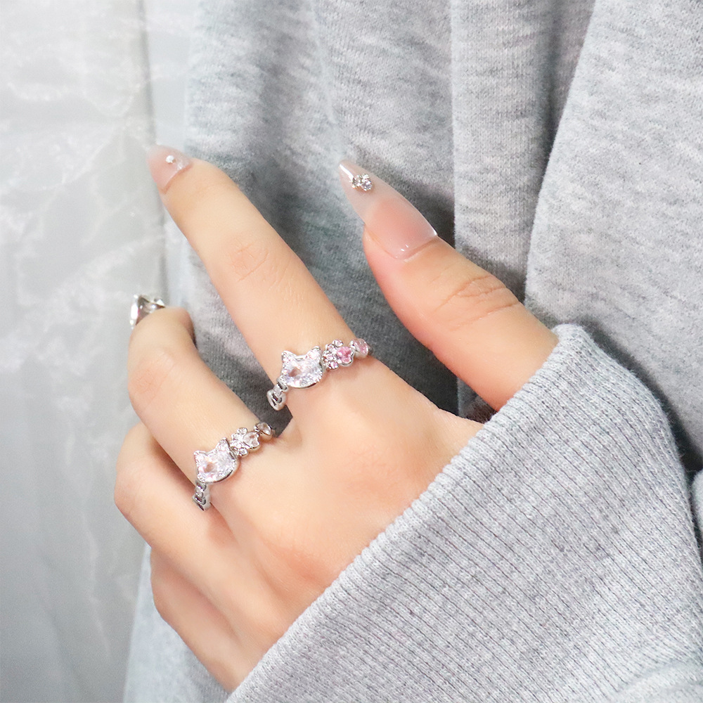 韓国版のファッションの清新な桜の指輪の女性の日韓のアクセサリの口はダイヤモンドの指輪を入れて簡単に創意の指環の学生を指します。