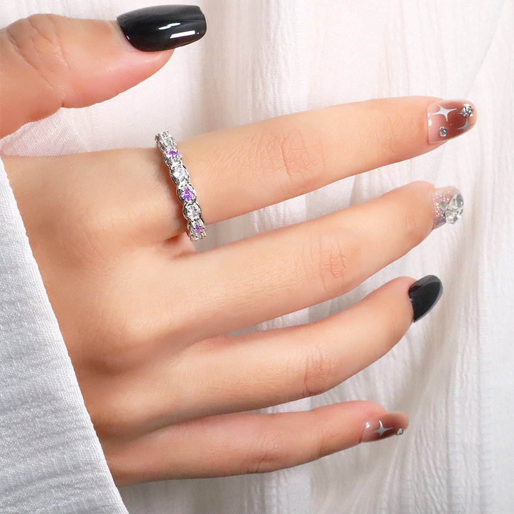 紫丁香麻花锆石戒指扭绳交叉线条戒子环复古精致浪漫紫钻食指指环