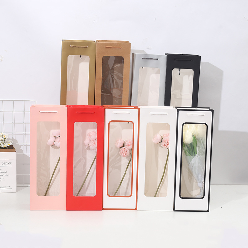 母の日花束紙袋ロング白段ボールギフトバッグ窓透明ハンドバッグギフト包装袋