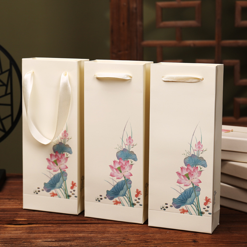 アンティークハンドバッグ、ギフトストリップ紙袋、新しい中国風の蓮のギフトボックス、マッチングバッグ、卸売在庫あり