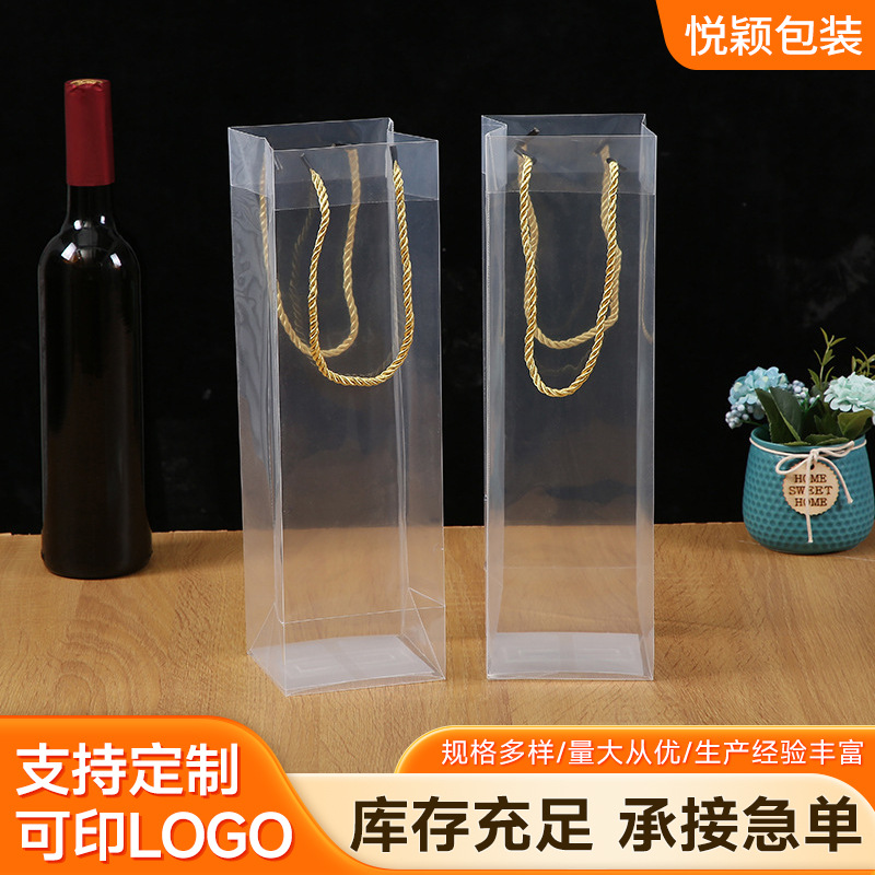 新しい透明なワインの手提げ袋のプラスチックppのワインの贈り物の袋の祝日のお土産のひもの包装袋の卸売り
