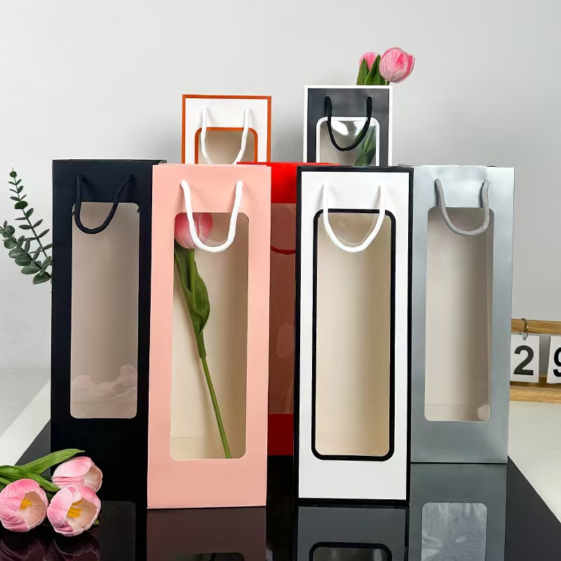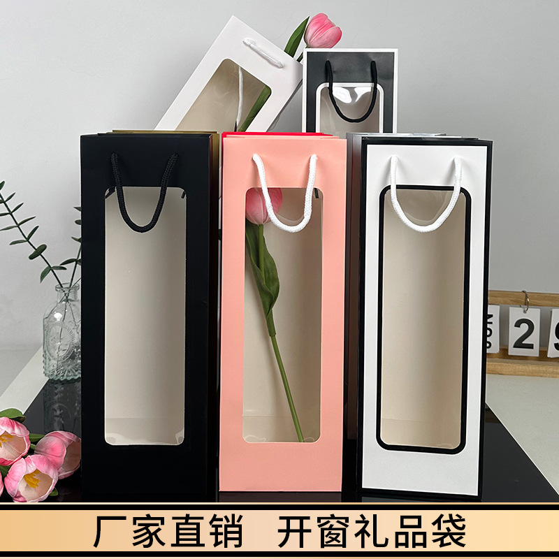 メーカー現物ワイン紙袋長条手提げ袋開窓透明pvc礼袋花束包装袋卸売り