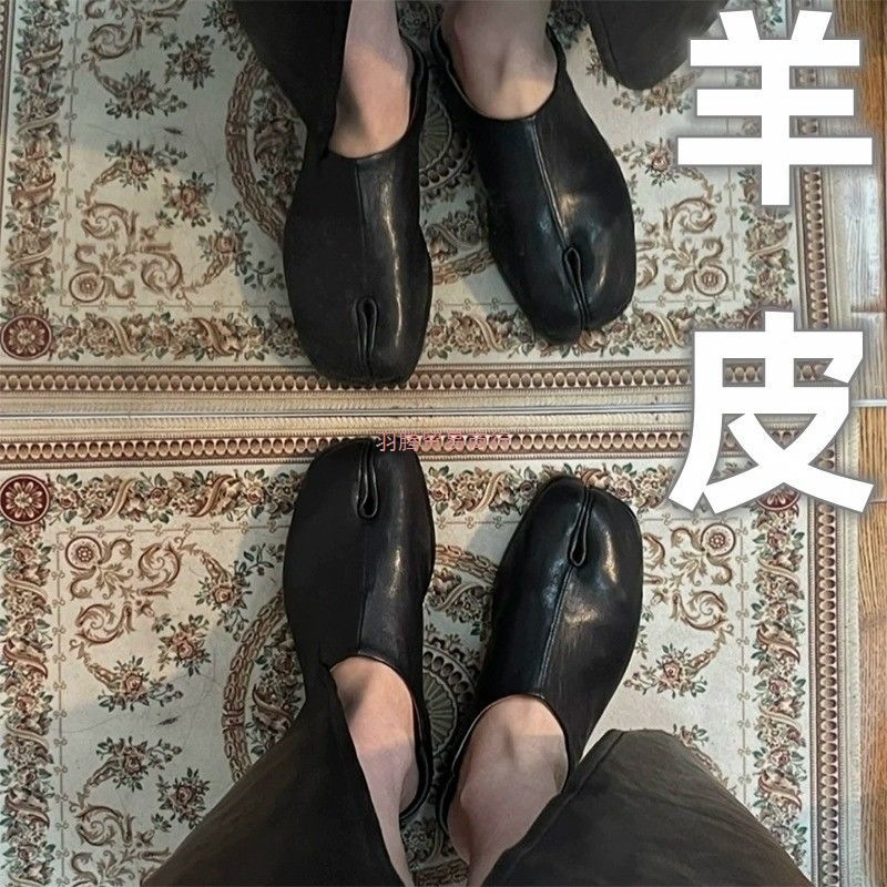 2025夏季新款植鞣羊皮tabi分趾鞋女平底猪蹄鞋懒人一脚蹬乐福鞋女