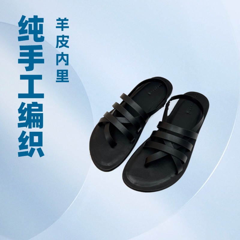 ヨーロッパ駅の女性靴2025夏の新型つま先ローマサンダル本革クロスリゾート風ビーチサンダルスリッパ