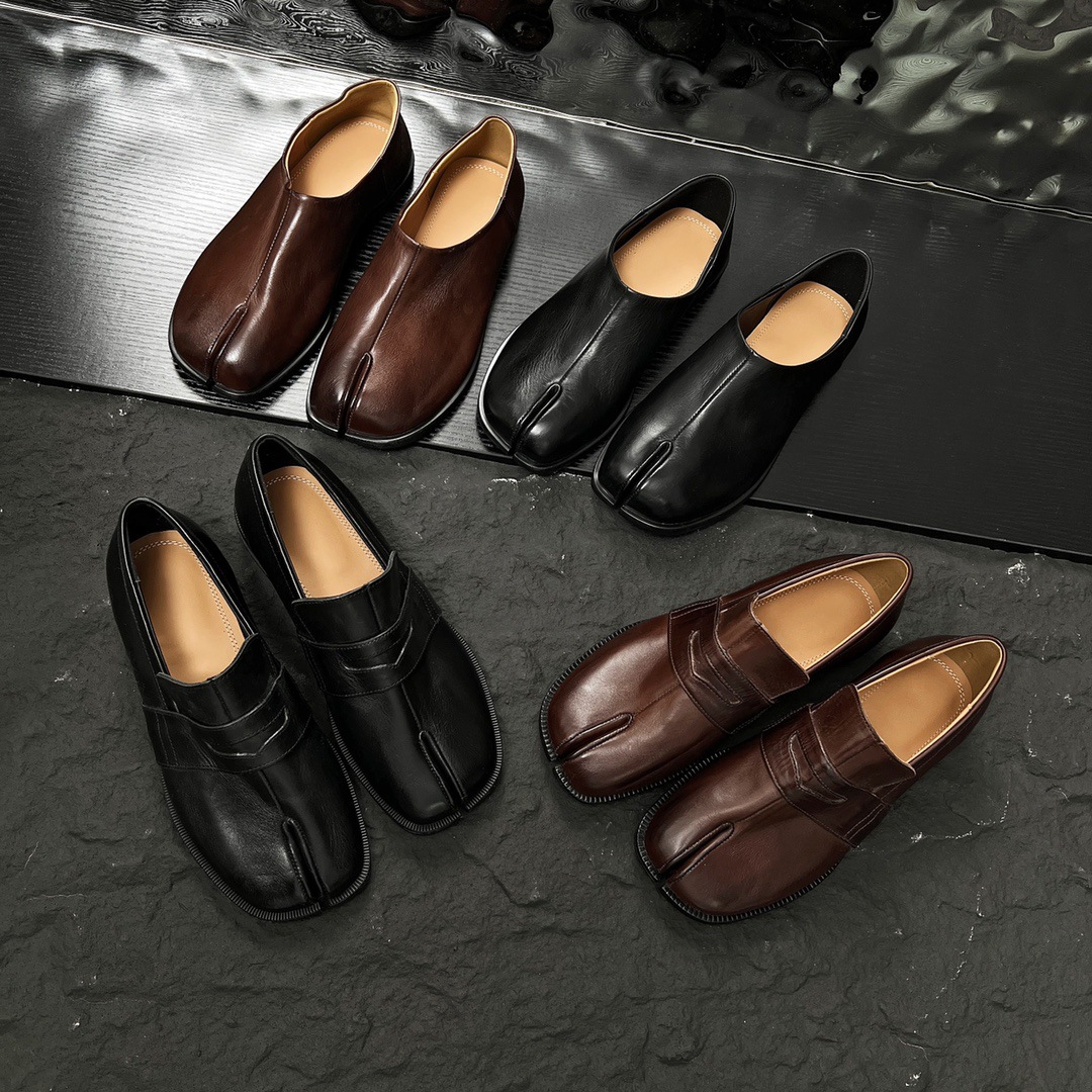 クロスボーダー水洗い馬革分割つま先MM6レディースシューズフラットイングランド風タビ日韓風フルレザーローファーメンズ革靴
