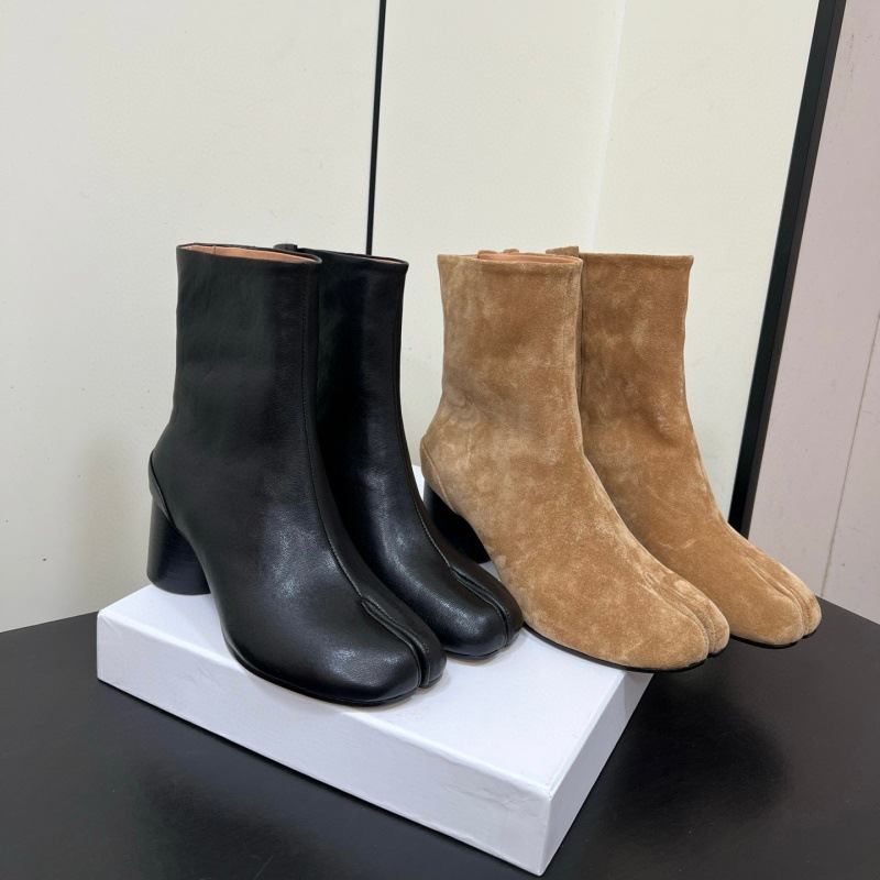 M6马吉拉高跟分趾靴女2025秋冬猪蹄tabi羊皮6cm8cm粗跟软皮短靴潮