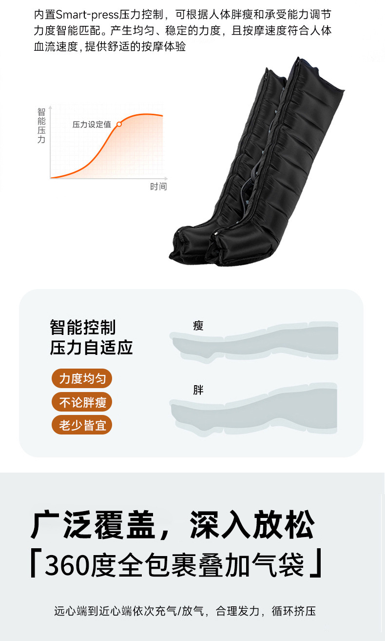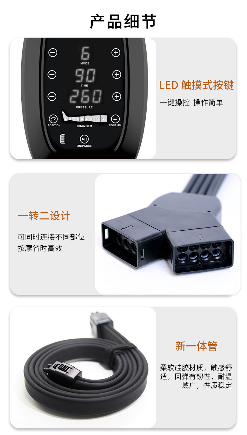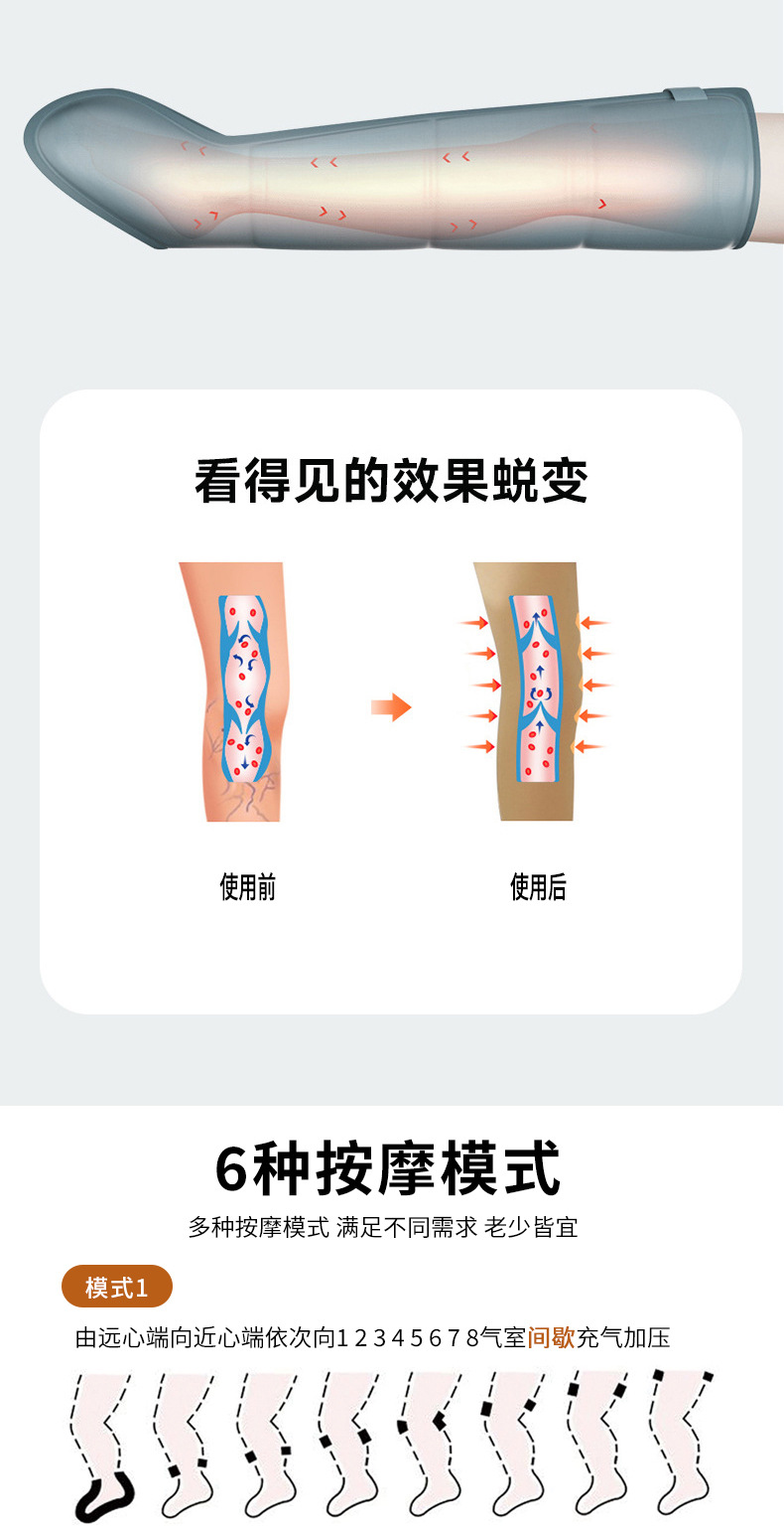 八腔空气波腿部按摩仪运动恢复长款全包裹气囊腿部按摩器跨境