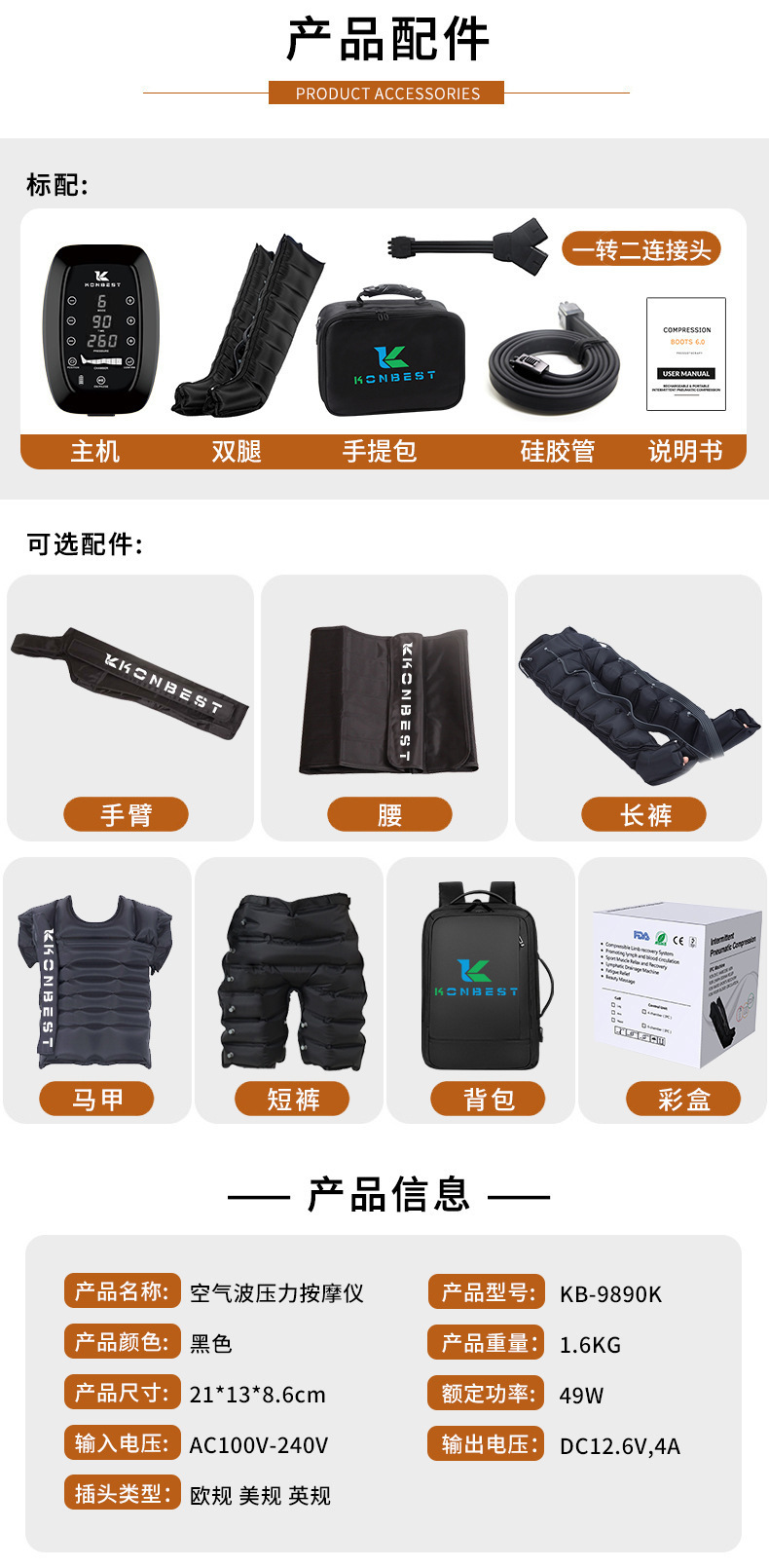 工場エアウェーブレッグマッサージャーエアバッグアクセサリーアームウエストショーツパンツベストジェル冷湿布レッグカバー