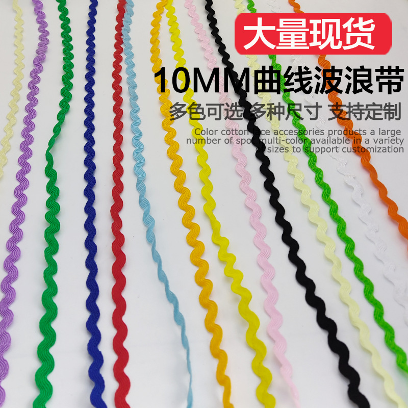 现货5mm纯色波浪S型曲边带花边织带结婚饰品窗帘帽子童装服装辅料