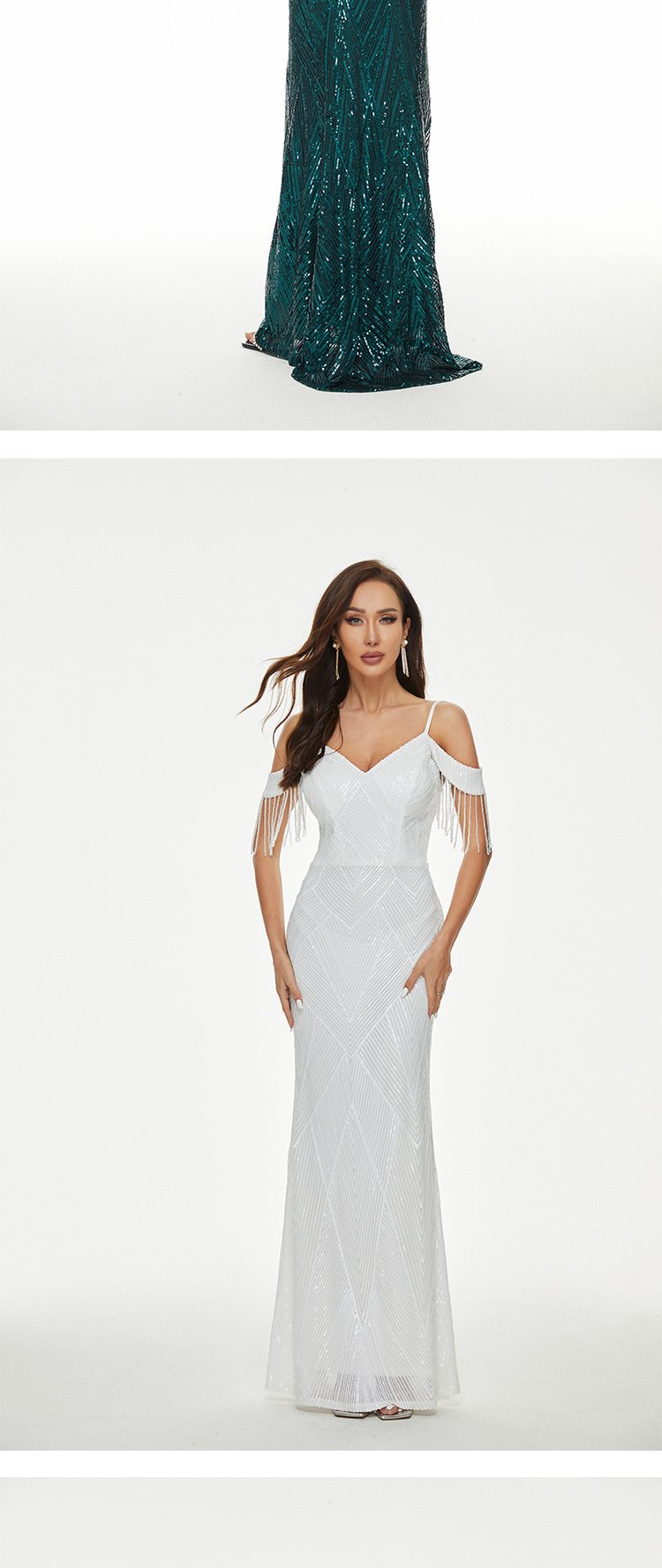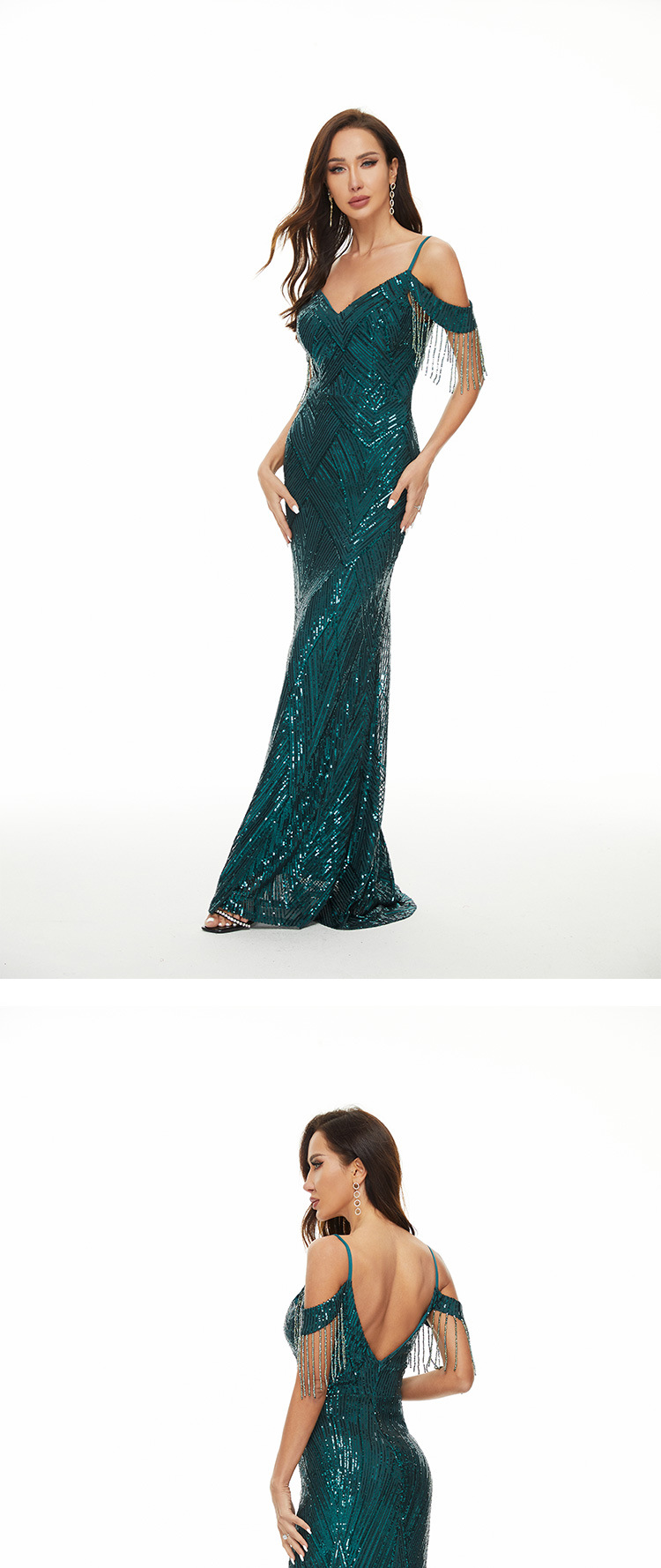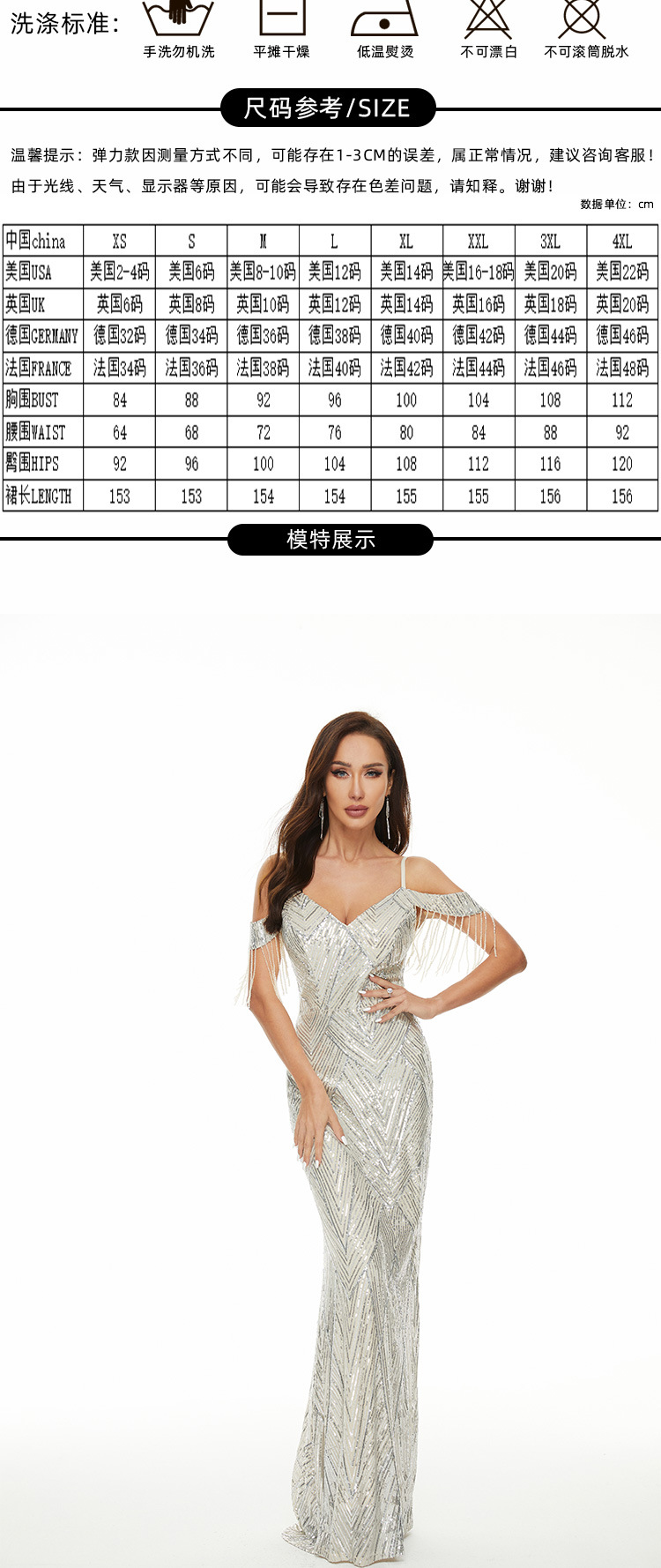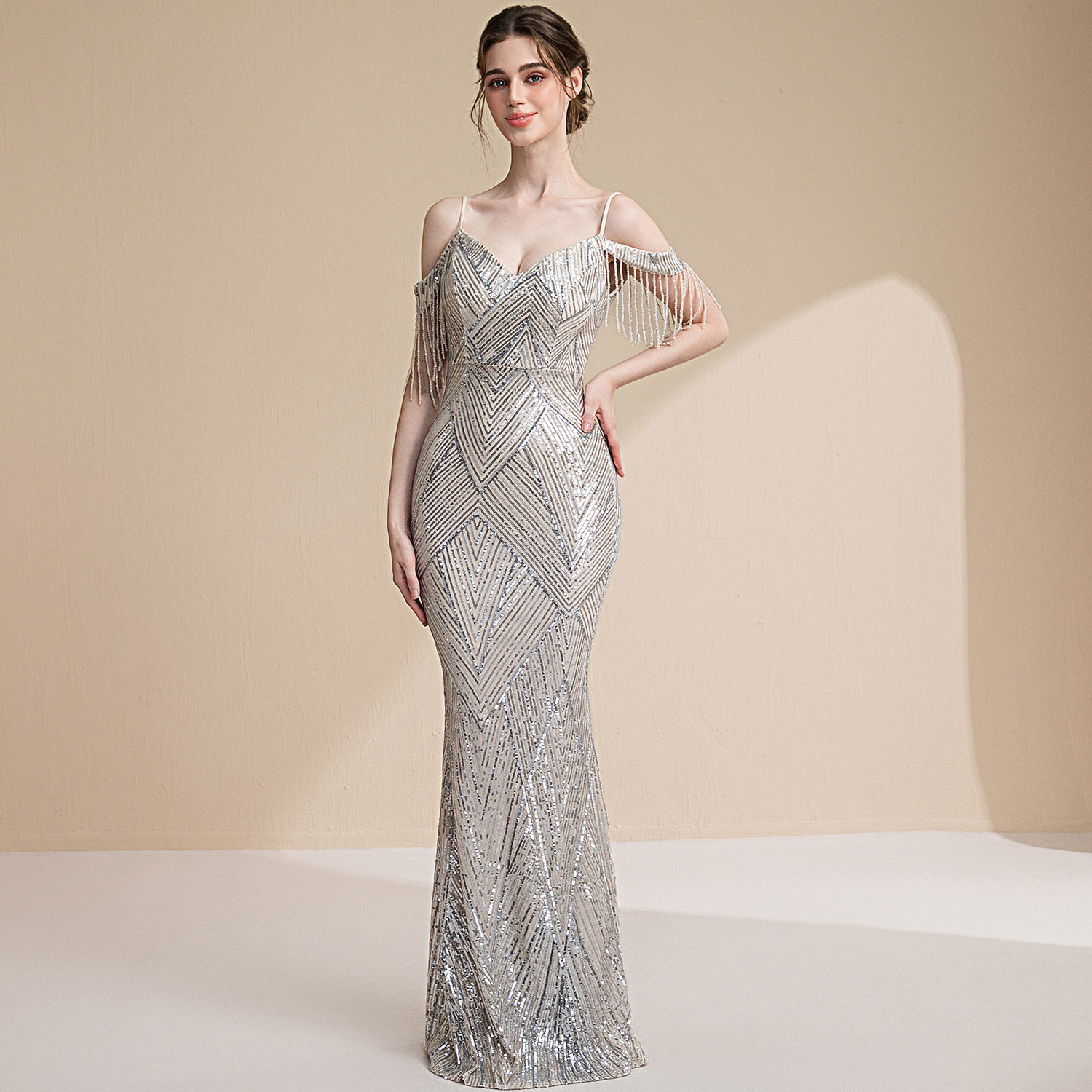 クロスボーダー欧米風乾杯服、宴会用イブニングドレス、上品なスパンコール付き司会者用フィッシュテールロングドレス、エレガントなシルエット