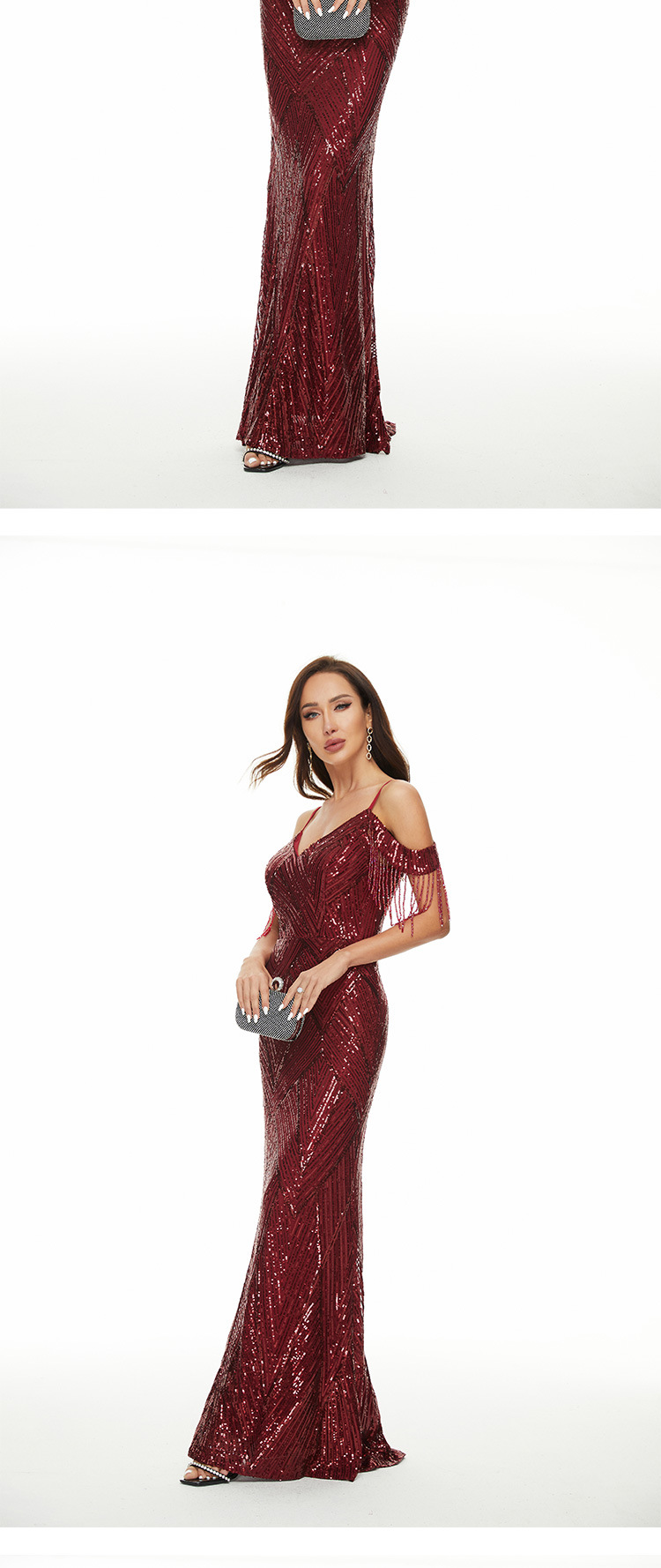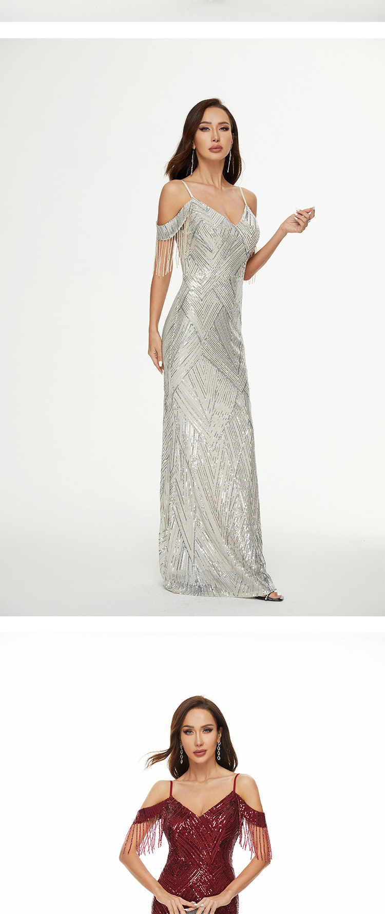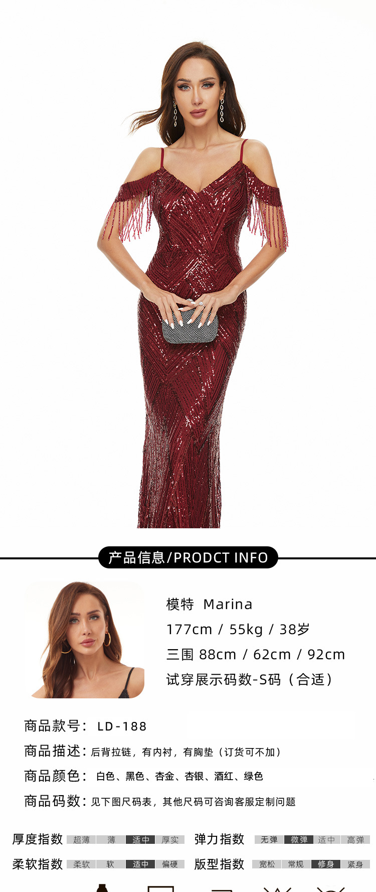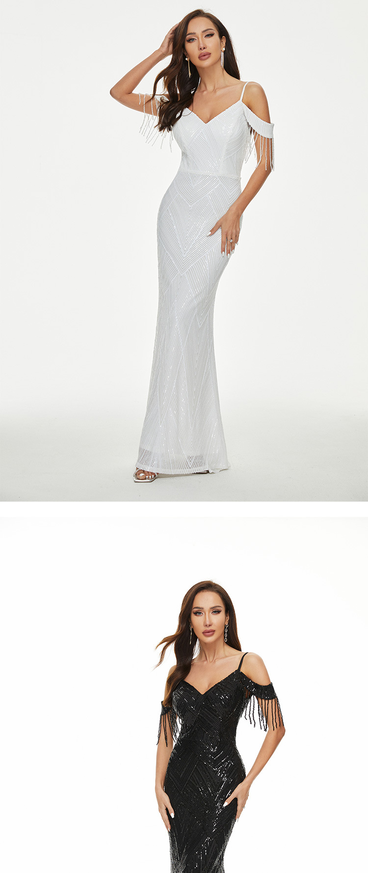 クロスボーダー欧米風乾杯服、宴会用イブニングドレス、上品なスパンコール付き司会者用フィッシュテールロングドレス、エレガントなシルエット