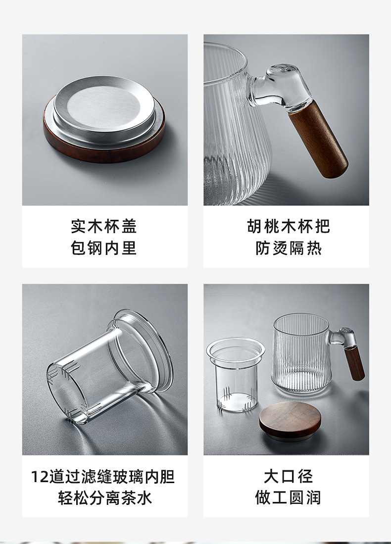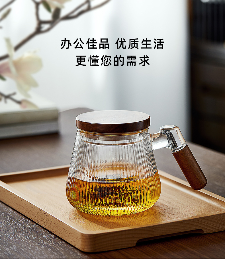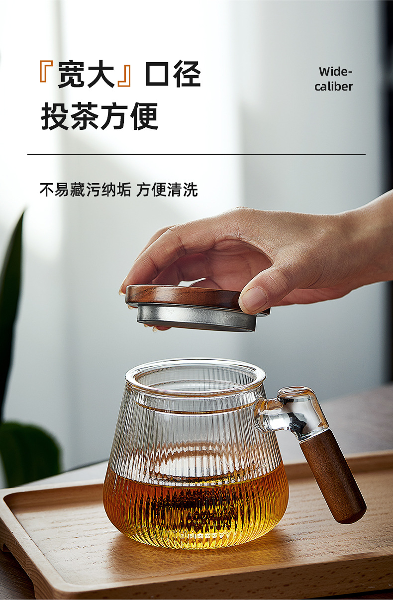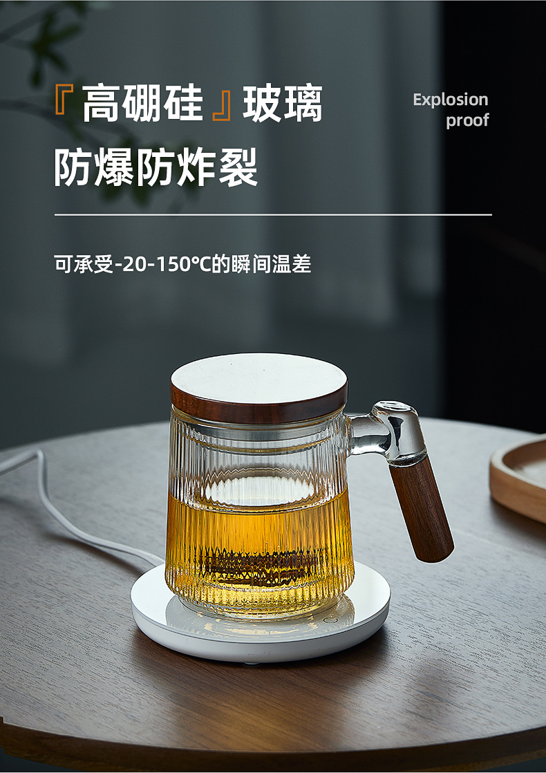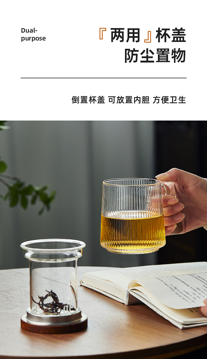 耐高温茶分離カップ高ホウ素シリコンフィルタ三点カップ家庭用透明蓋付き耐熱ガラスカップコップコップ