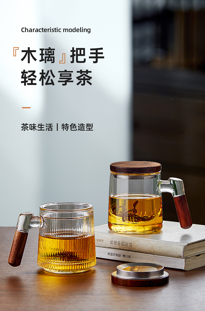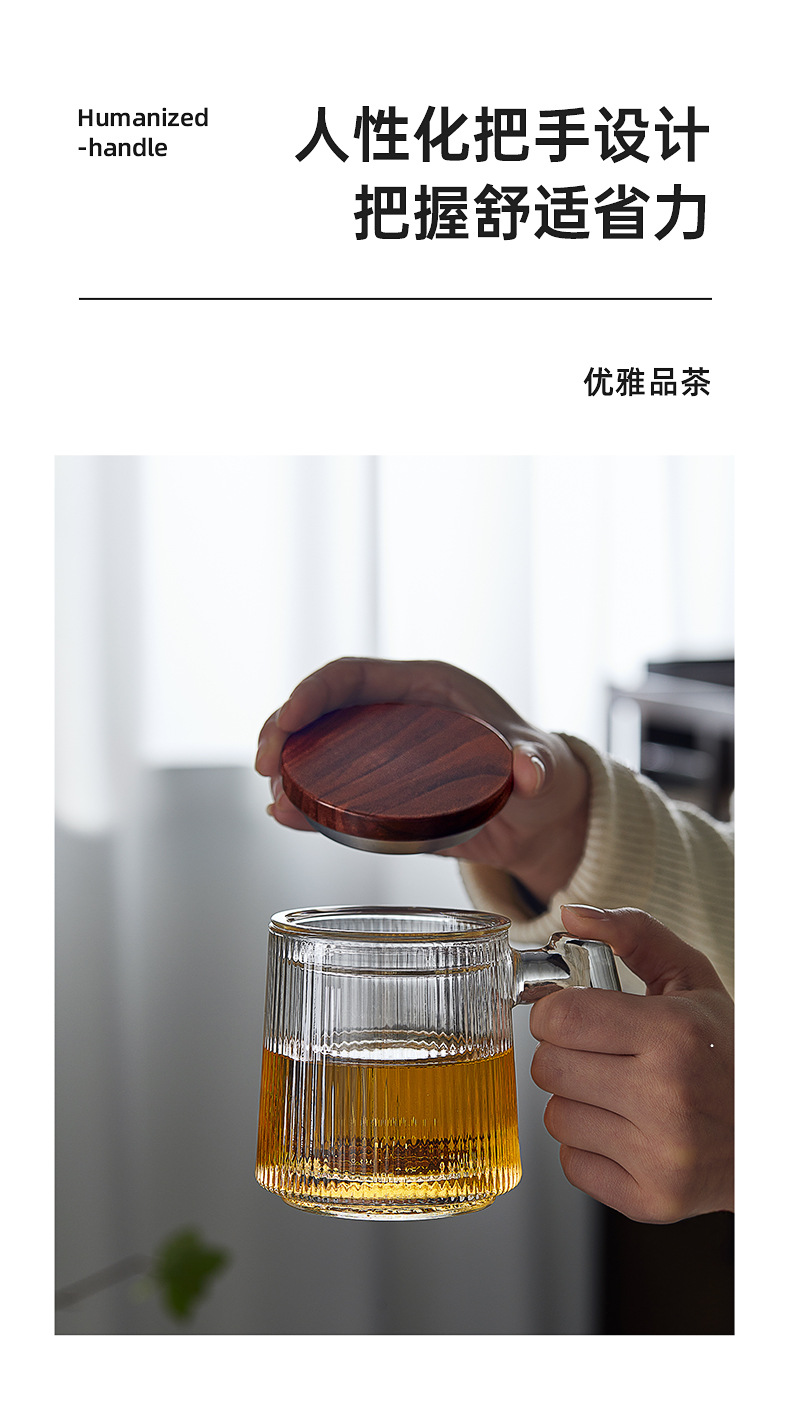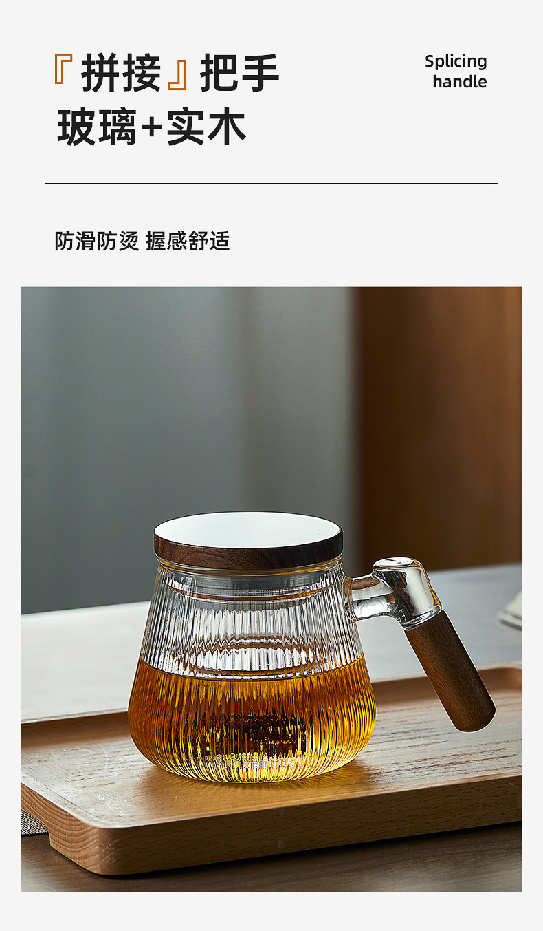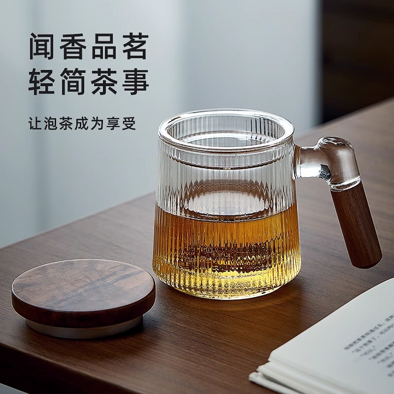 耐高温茶分離カップ高ホウ素シリコンフィルタ三点カップ家庭用透明蓋付き耐熱ガラスカップコップコップ