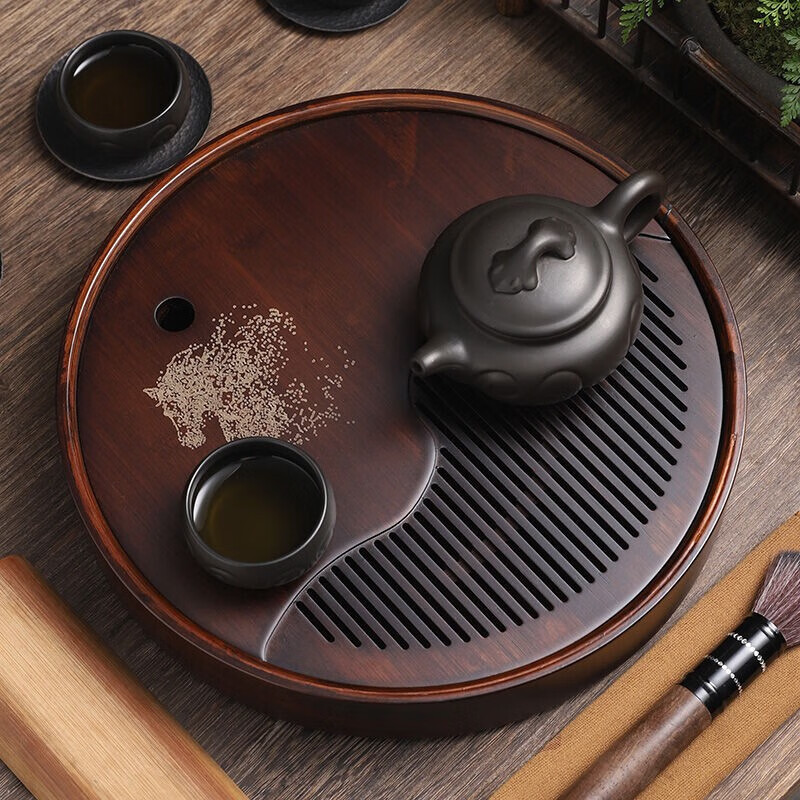 洗練されたシンプルな茶皿家庭用小型簡易排水式竹製茶座円形茶托茶台茶器トレイ