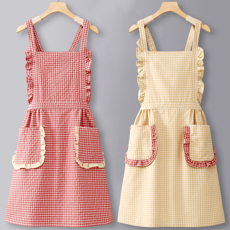 2025 新スタイルエプロン純綿女性用ホームキッチンエプロンインターネット有名人の家庭用および屋外調理用通気性のあるケータリング作業服