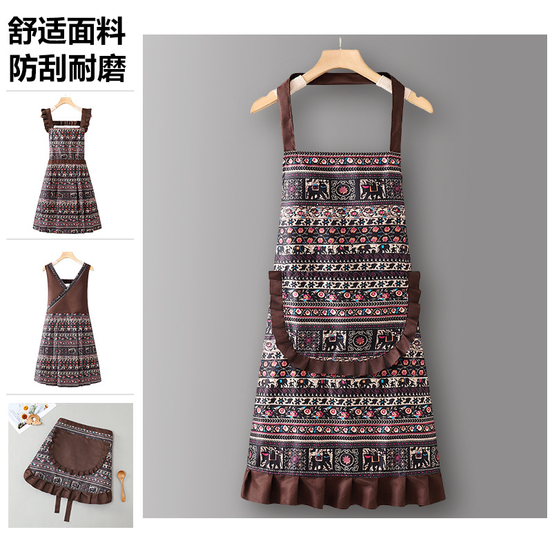 レトロな民族風エプロン キッチン用 家庭用 2025年新作 おしゃれな純綿 女性用 美しい 夏用 薄手 カフェ・レストラン向け 通気性