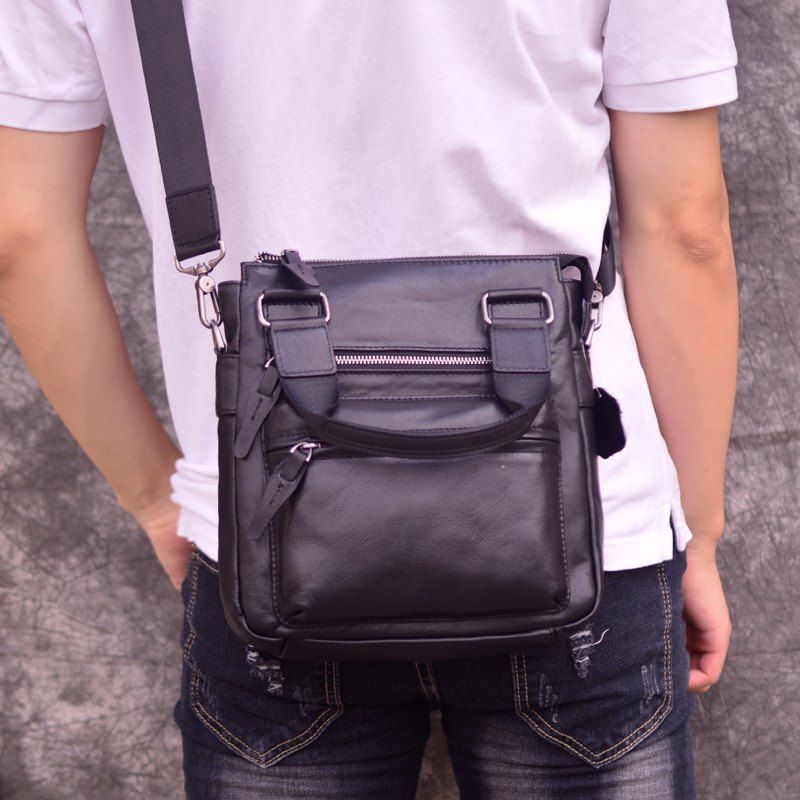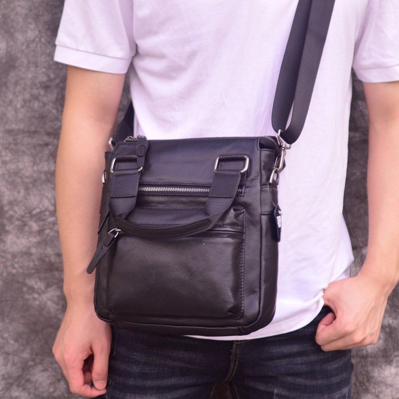 シンプルな通勤男性の本革シングルショルダーの斜め掛けバッグになめを入れた牛革のバッグ
