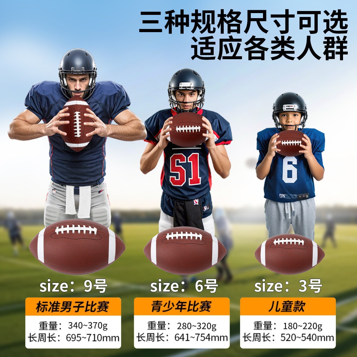 正品批发美式橄榄球美式足球训练比赛成人9号青少年6号3号橄榄球