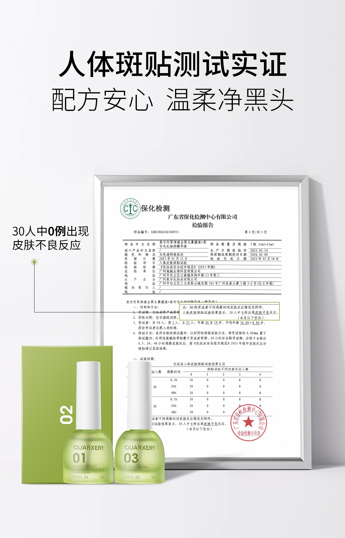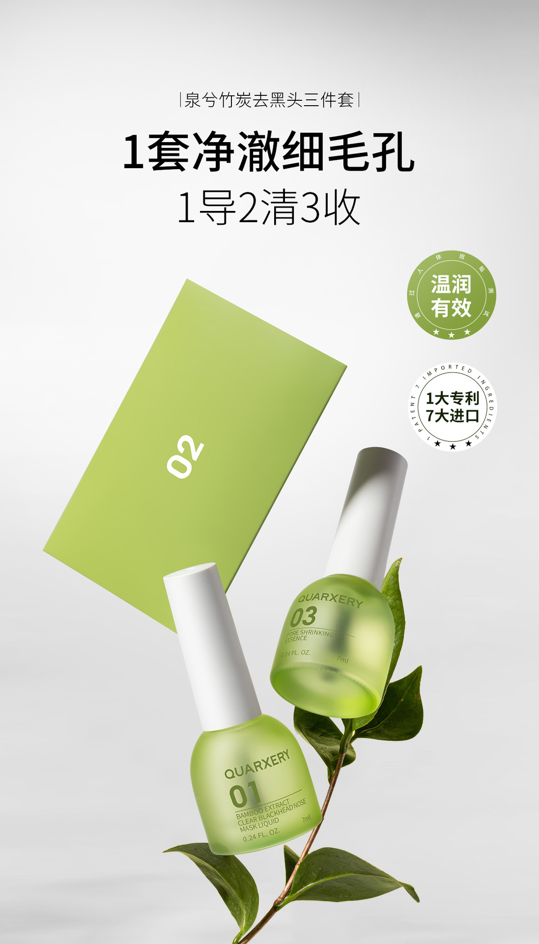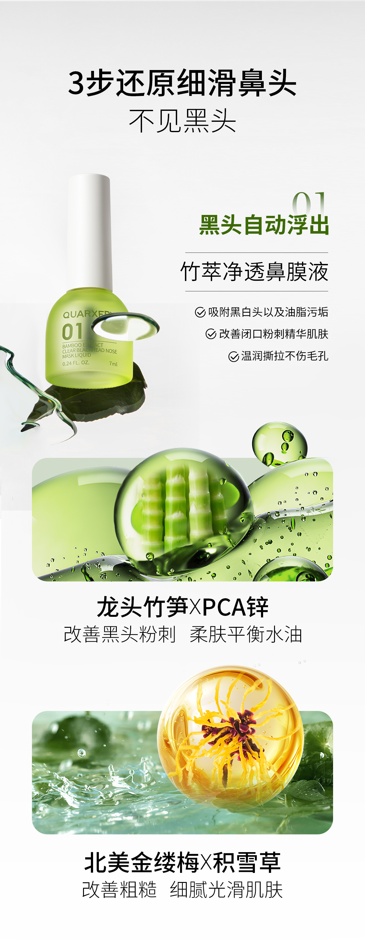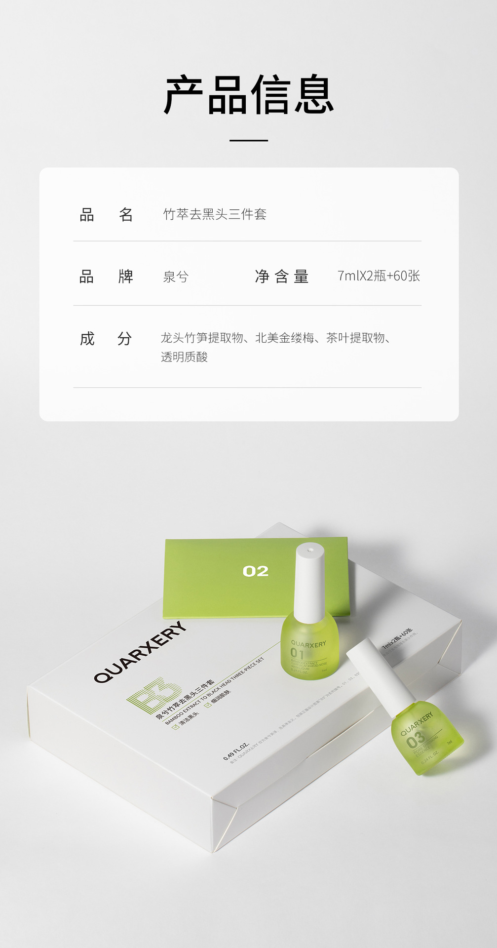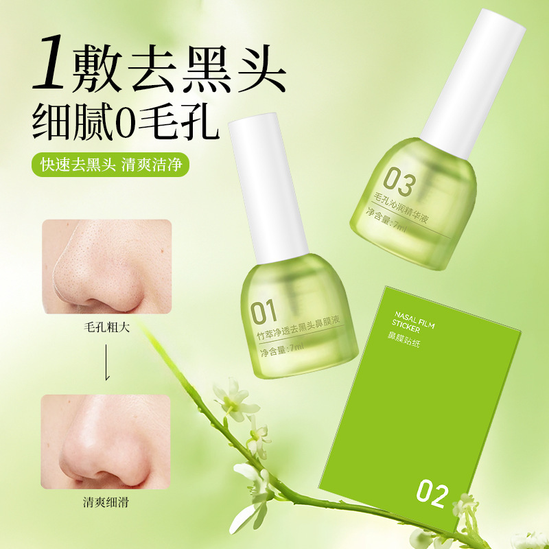 BOBV竹萃去黑头三件套去黑头粉刺收缩毛孔深层清洁黑头导出液鼻贴