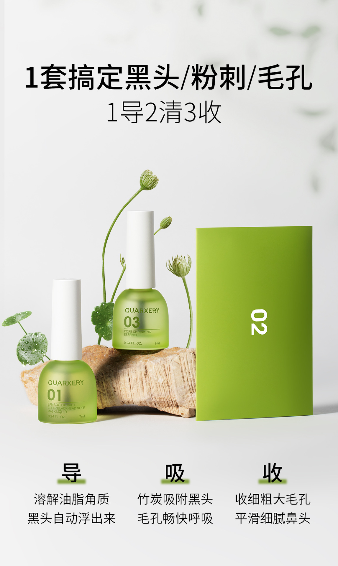 スペシャルメイク商品名 Quanxi 竹エキス黒ずみ除去鼻マスク + Quanxi 毛穴改善エッセンス