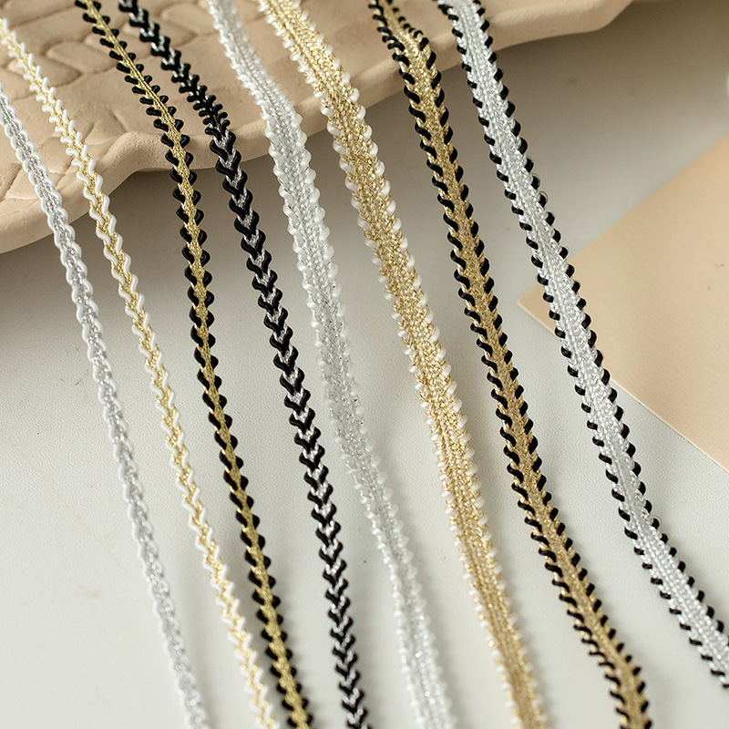 工場直売0.4/0.6cm金銀無弾小香風の美しい竜骨蛇腹縄帯服装装飾帯