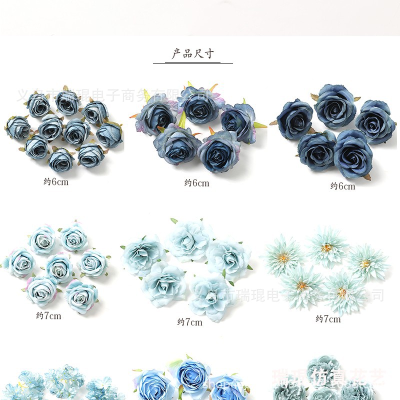 造花 ブルーシリーズのバラ、アジサイ、牡丹の花頭 造花DIY素材 結婚式用花飾り