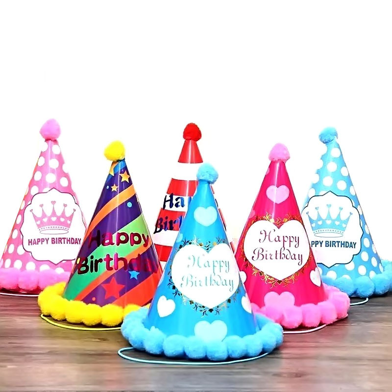 ぬいぐるみボール誕生日帽子卸売誕生日用品カラフルな子供の 1 歳のパーティーの装飾幼稚園紙帽子