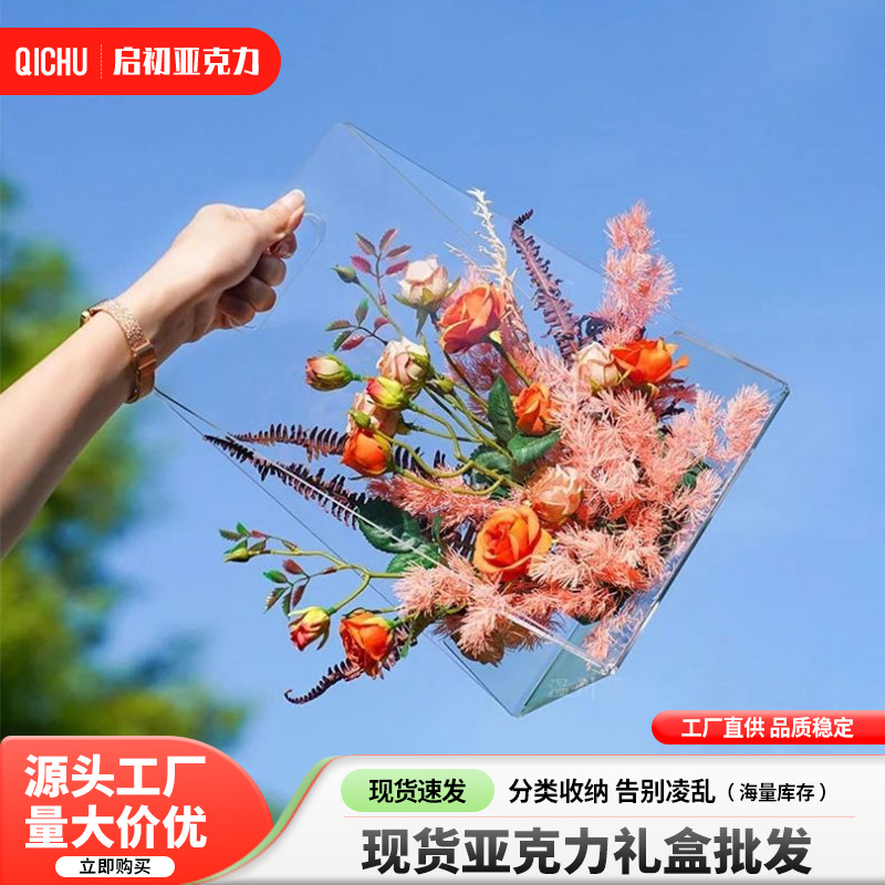 跨境亚克力三角手提花盒520七夕情人节生日礼物鲜花伴手礼盒定制