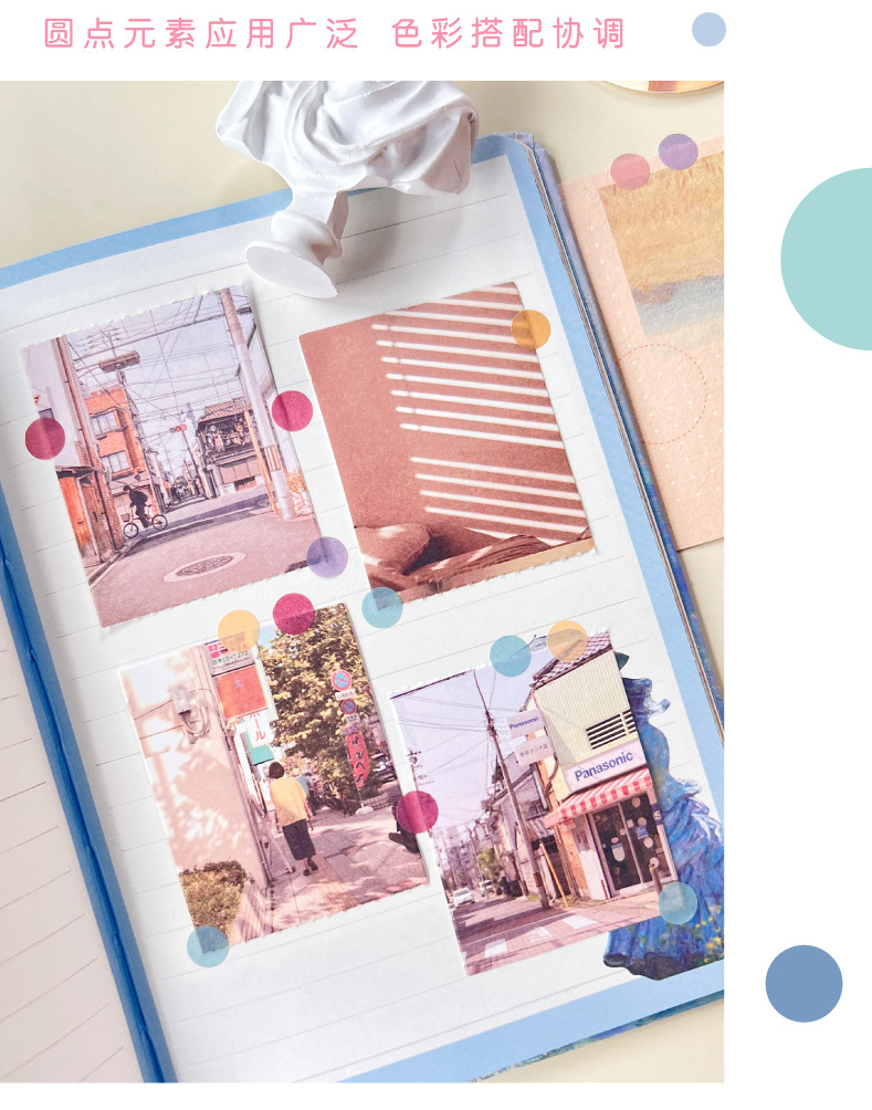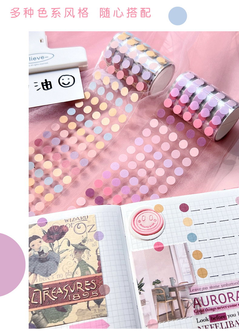 カラーシンプル手帳丸点テープ単巻学生マーク重点手帳波点DIYタイル装飾シール