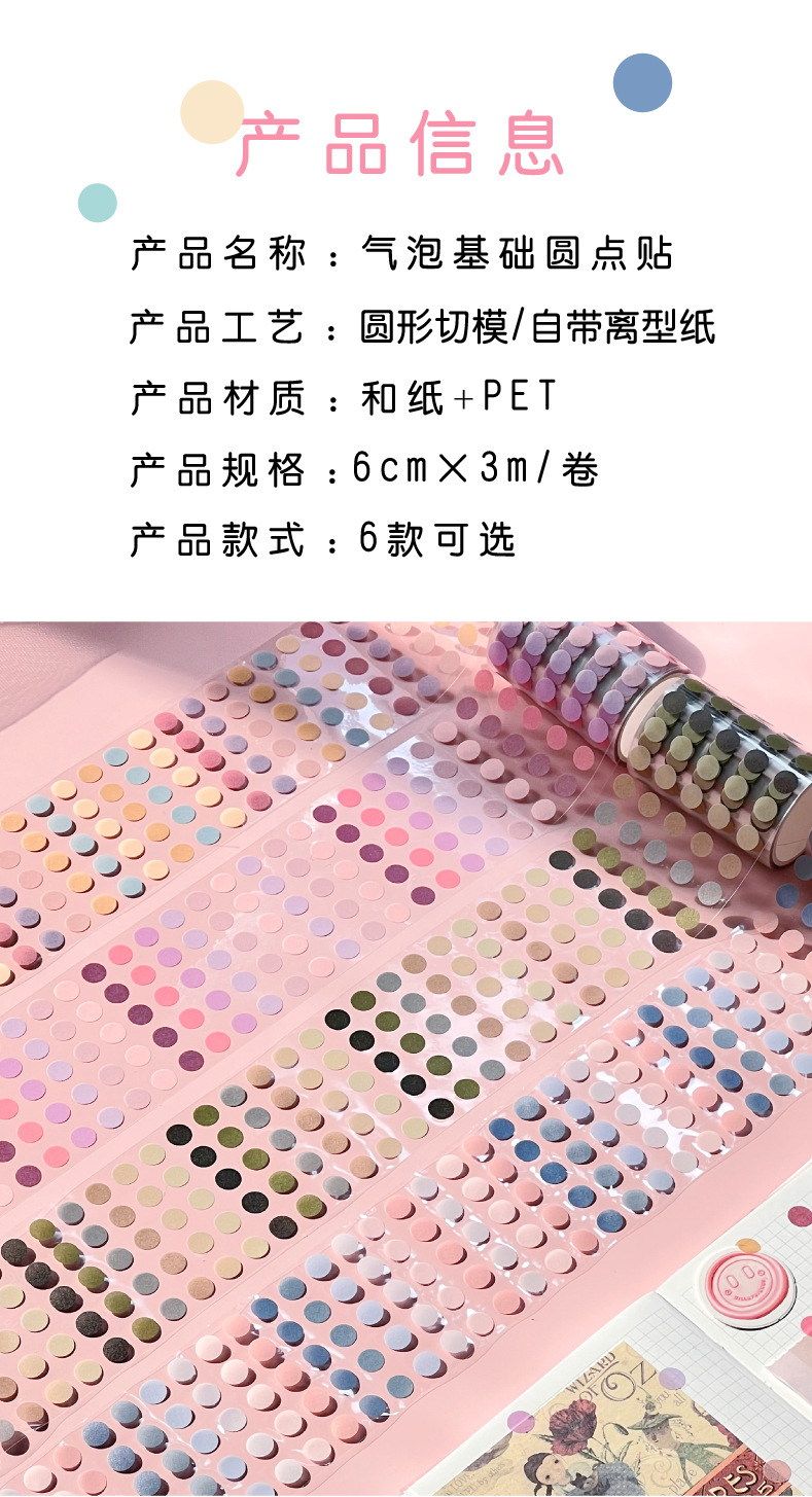 莫兰迪色圆点和纸胶带基础手帐彩色波点贴纸圆形标记手账笔记素材