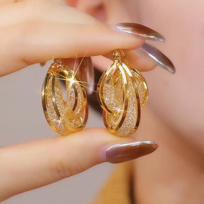 金糸網状カレー色水晶水滴耳掛けイヤリング女性の軽贅沢高級感ファッション大気耳掛け気質耳飾り